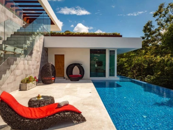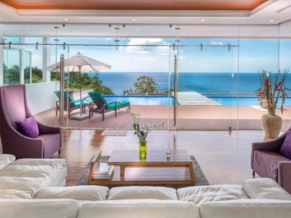 Super villa de style moderne, avec une vue panoramique époustouflante sur la mer et le coucher du soleil à Kamala.