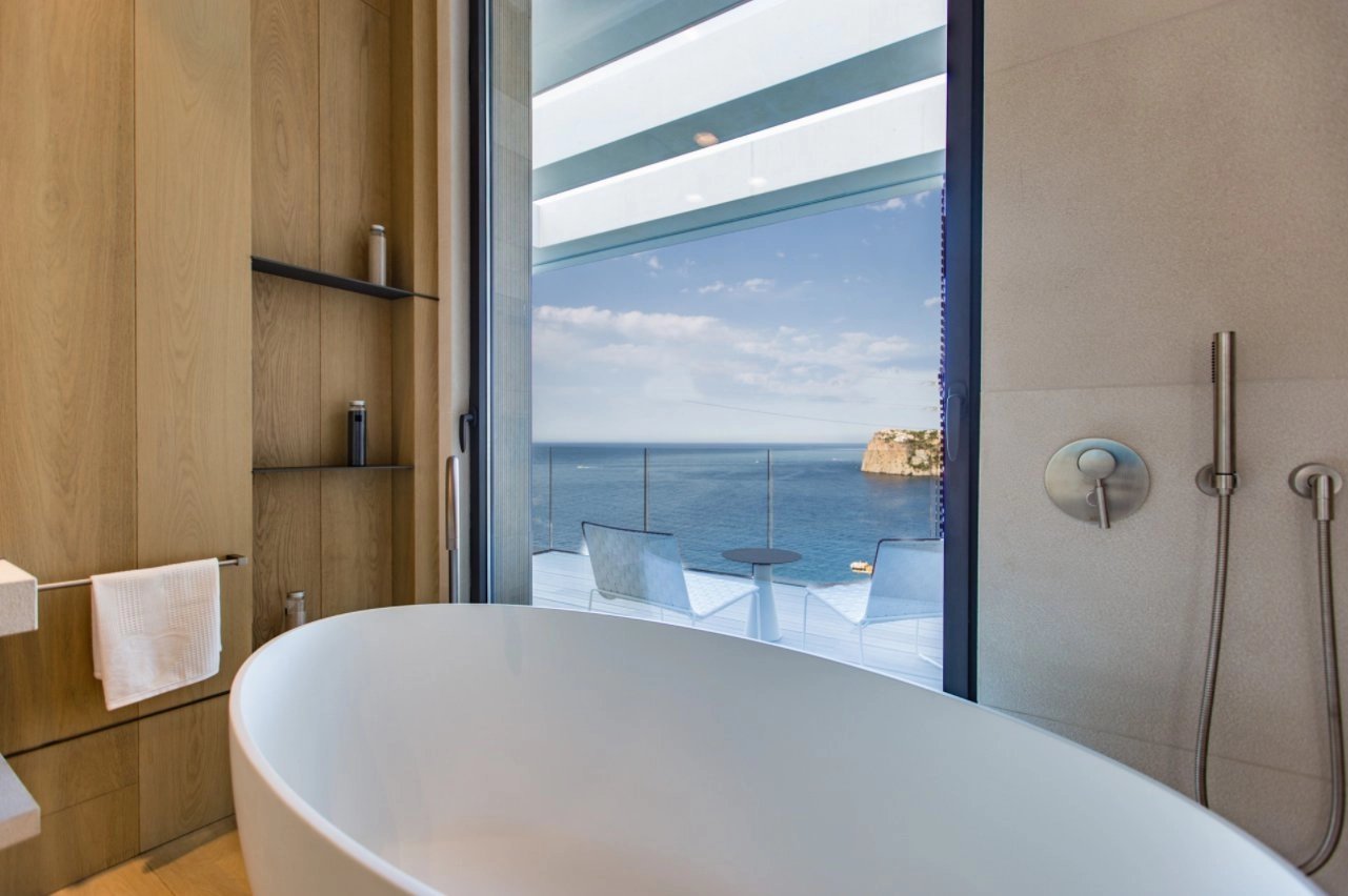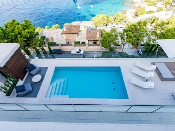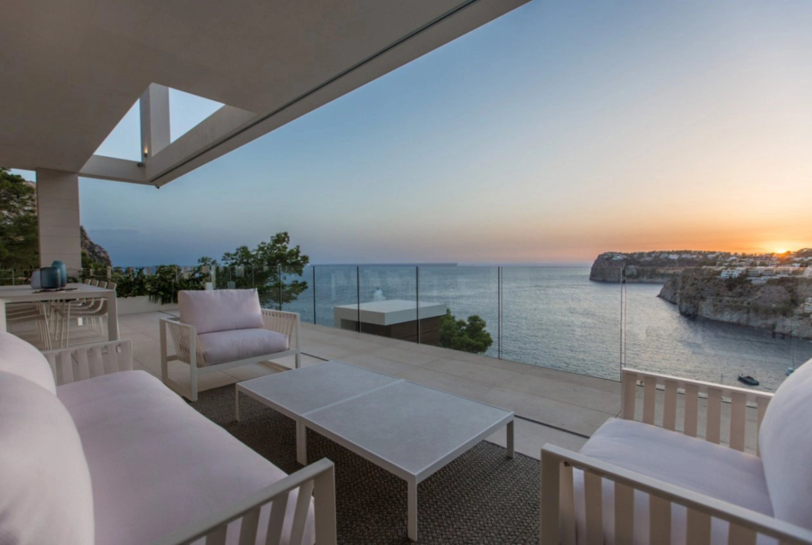 Villa au design moderne avec vue spectaculaire sur la mer, prête à emménager, à Cala Llamp.