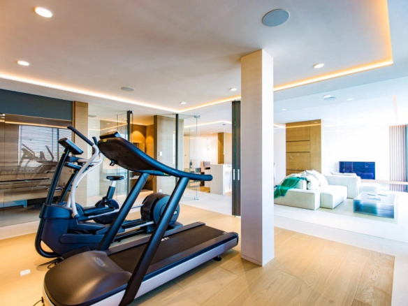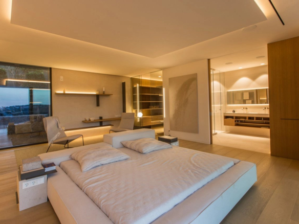 Cette nouvelle villa de style moderne à Port Andratx a été construite avec des matériaux haut de gamme, avec un design intérieur personnalisé depuis le début du projet, réalisant une villa à la fois moderne et chaleureuse grâce à l’utilisation de matériaux nobles tels que le bois, la pierre et le fer. Il est situé dans une position élevée par rapport à ses voisins, vous permettant de profiter d’une intimité absolue. Les vues sur la mer sont tout simplement spectaculaires, profitant de la couleur turquoise de Cala Llamp et de magnifiques couchers de soleil. La maison offre au rez-de-chaussée un salon avec 2 chambres et une salle à manger entièrement ouverte avec une cuisine entièrement équipée avec un îlot de Boffi. De tous les espaces, de grandes baies vitrées ouvrent sur la terrasse partiellement couverte. Son escalier en éventail se distingue par ses marches en chêne qui “coulent” dans le salon et sa double hauteur avec une grande fenêtre. À l’étage supérieur, il y a 3 chambres spacieuses avec salle de bains privative, toutes avec des vues spectaculaires sur la mer. La chambre principale avec dressing, placards et grand coin salon. Toutes les salles de bains disposent de grandes douches à l’italienne et de baignoires séparées et offrent une vue sur l’océan. Au sous-sol, il y a un espace bar avec un deuxième salon avec accès direct à la piscine. A côté du salon, il y a un espace fitness avec sauna et salle de bain. Ainsi qu’un appartement d’hôtes avec salon, grande chambre et salle de bain. Au niveau de la rue, il y a un parking pour 2 véhicules et la propriété est accessible par un ascenseur.