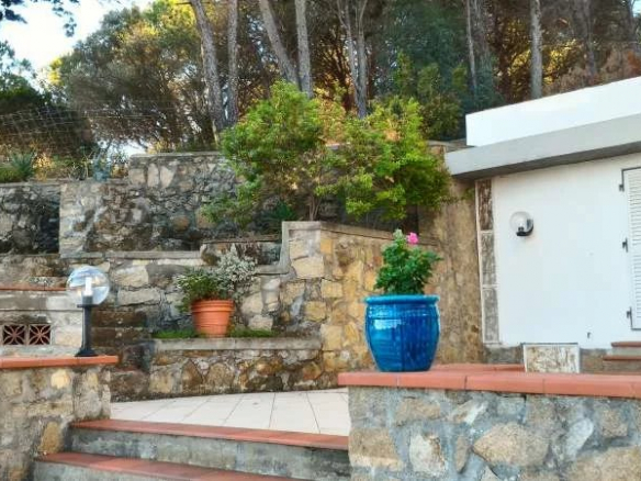 La Villa I Mirti surplombe Cala delle Caldane, unanimement définie comme la plus belle plage de l’île de Giglio. On y accède à pied, par un magnifique chemin facilement praticable, en marchant dans la verdure et en profitant de la mer spectaculaire en contrebas pendant environ 15 minutes après avoir laissé la voiture au parking Cala delle Cannelle. Alternativement, depuis le port, avec un service de batelier qui, en été, toutes les demi-heures, en cinq minutes de navigation, arrive sur un quai confortable à 20 mètres de l’entrée. La villa est située sur une propriété d’environ 2800 mètres carrés à partir de la plage, où se trouve un bâtiment très confortable qui peut être utilisé comme dépôt de matériel ou garage pour un petit bateau.