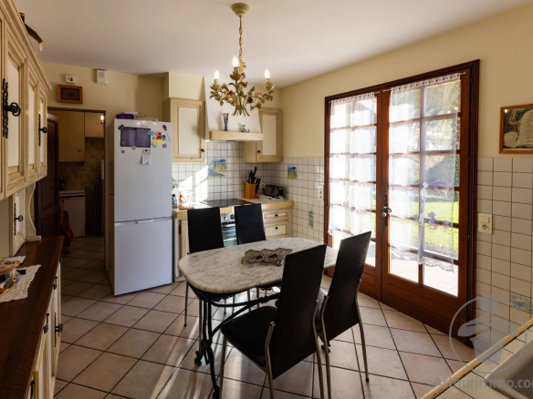 La maison développe des volumes intéressants avec un séjour ouvert sur le jardin, une cuisine indépendante avec cellier, un bureau et une chambre en rez-de-chaussée.