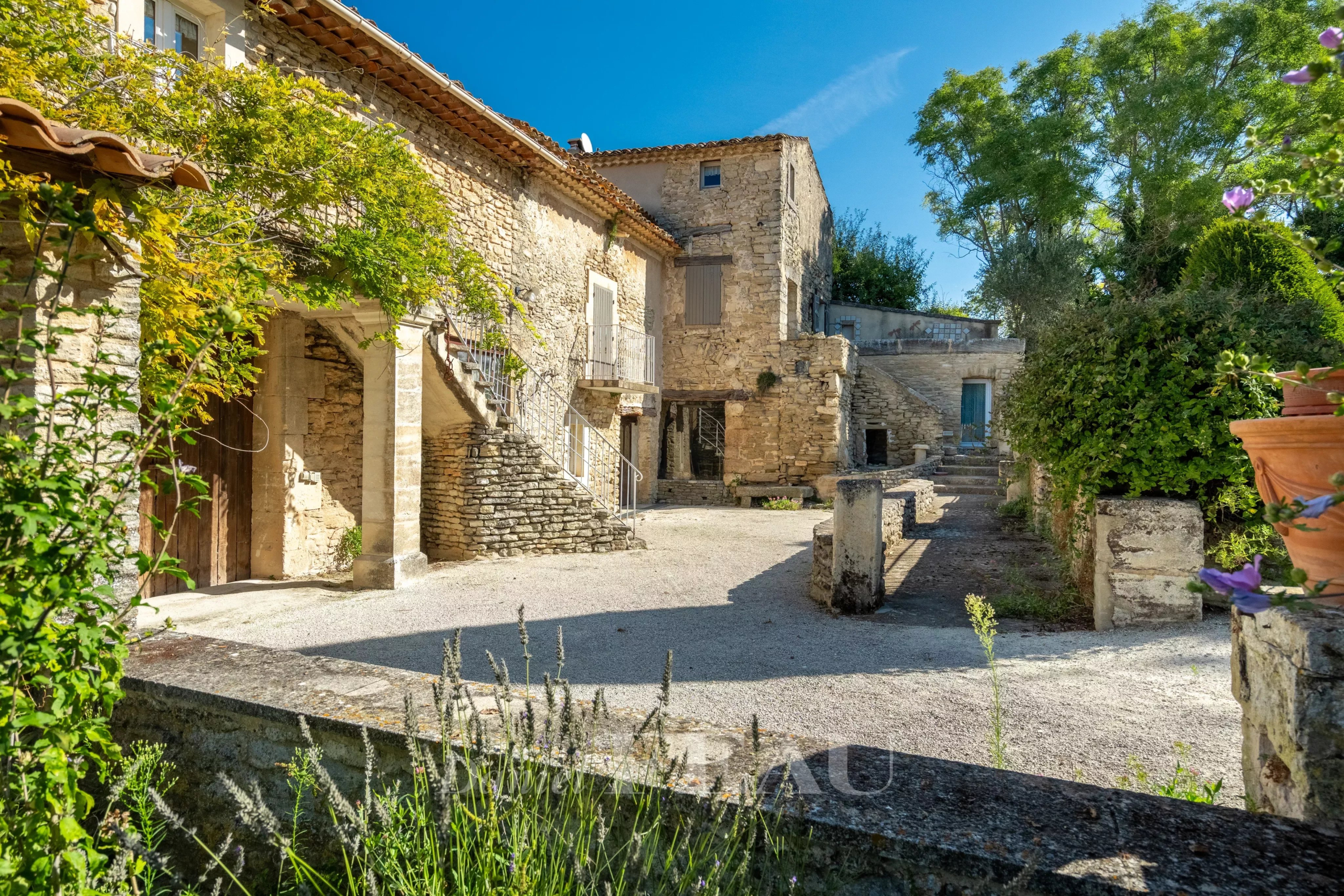 En campagne de Bonnieux, au calme, offrant une vue dégagée sur la vallée du Luberon et le Mont Ventoux, propriété de 405 m2 composée d’un mas authentique avec dépendances et implantée sur plus de 5,6 ha de terres, libres d’exploitation, réparties entre jardins paysagers, verger (plus de 300 arbres fruitiers) et champs de lavandins, pour une ambiance champêtre et provençale.