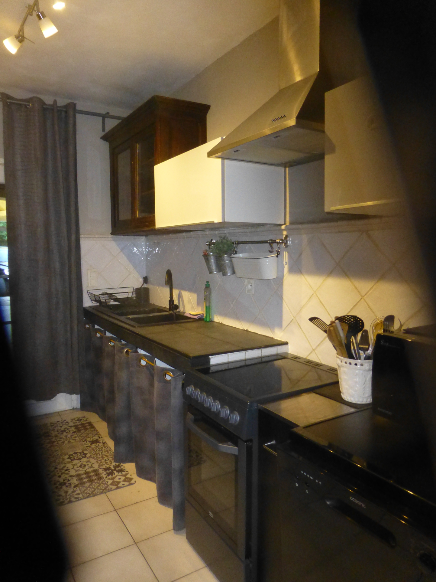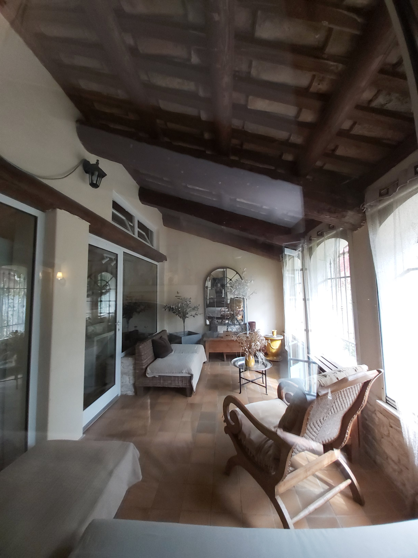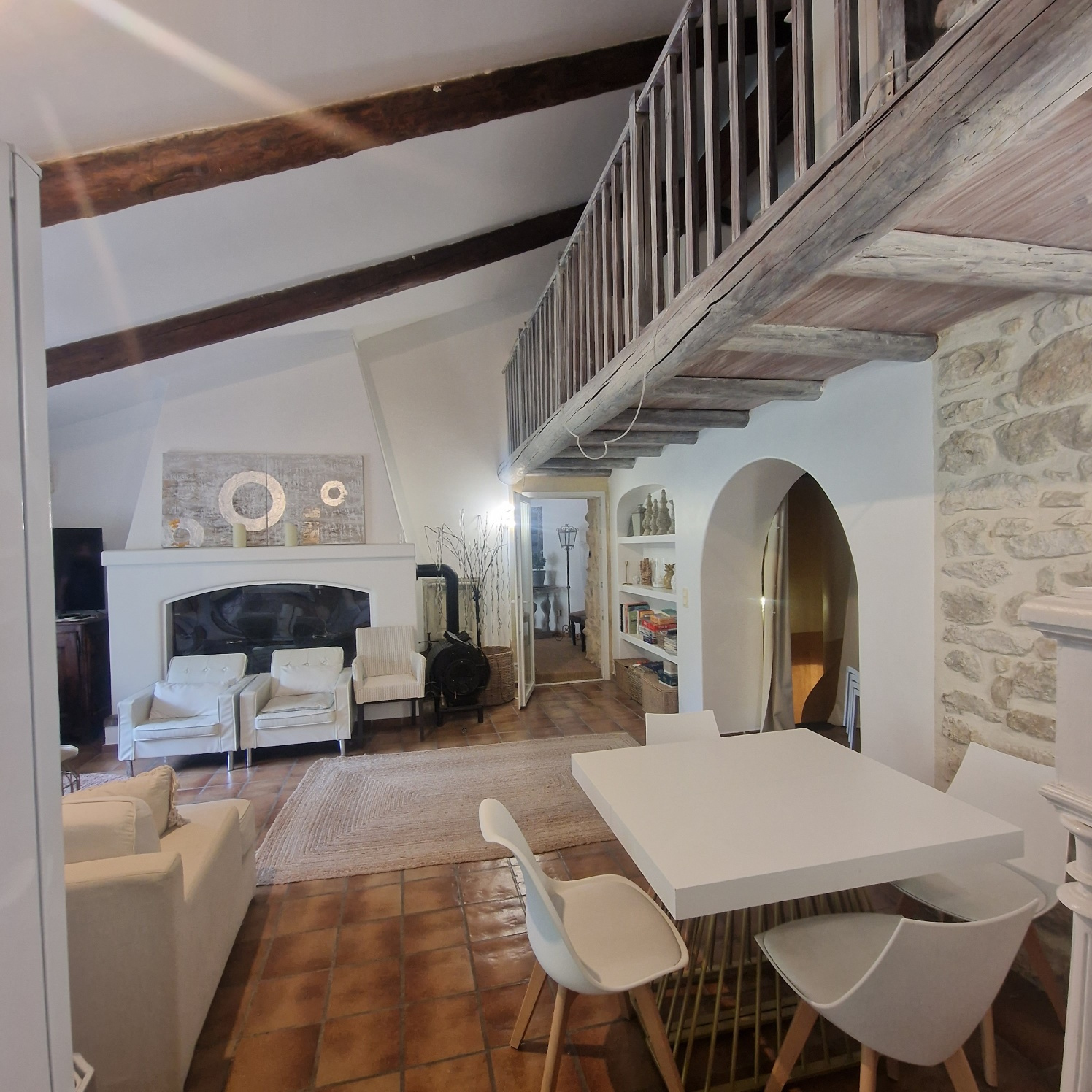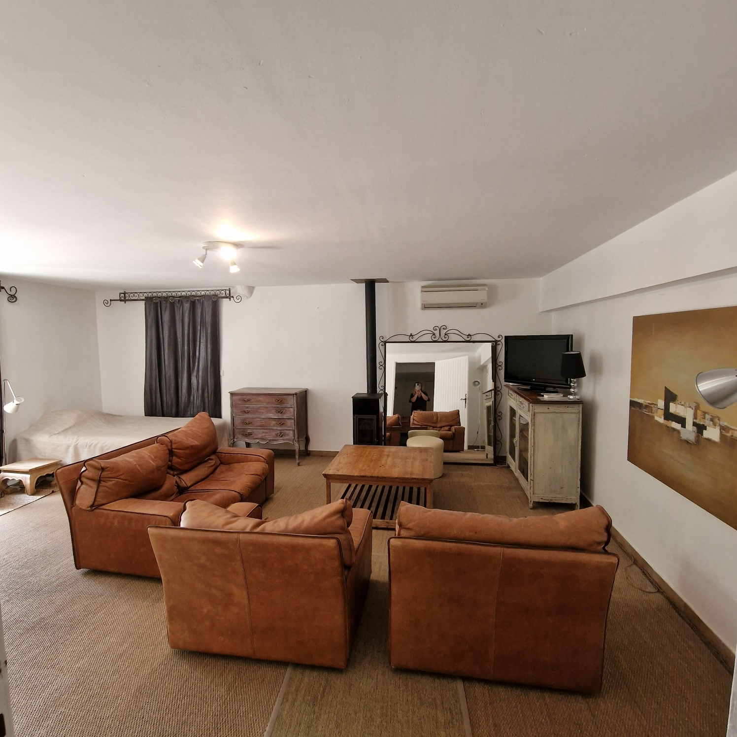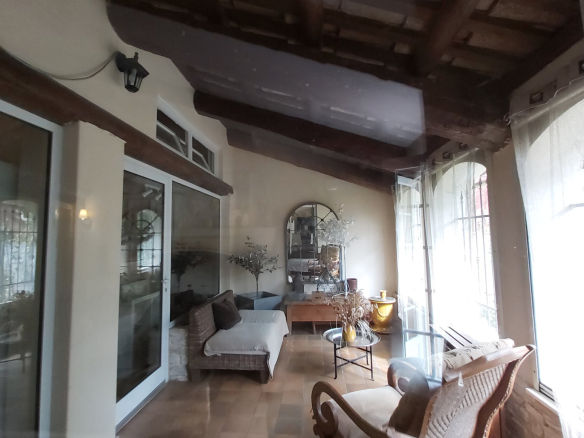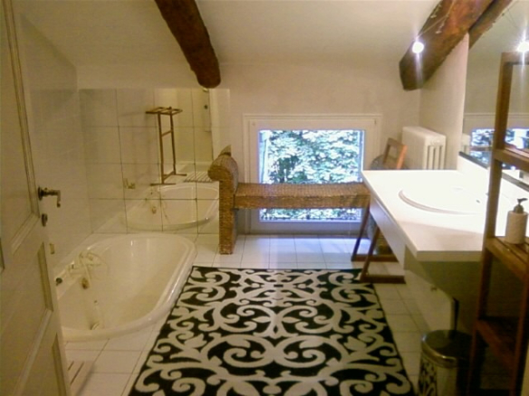 Le Mas est mitoyen, mais non gênant, pas de vis-à-vis. Il se compose d’un T2 indépendant loué 500 EUR/semaine, et pour la partie principale une possibilité de deux logements.