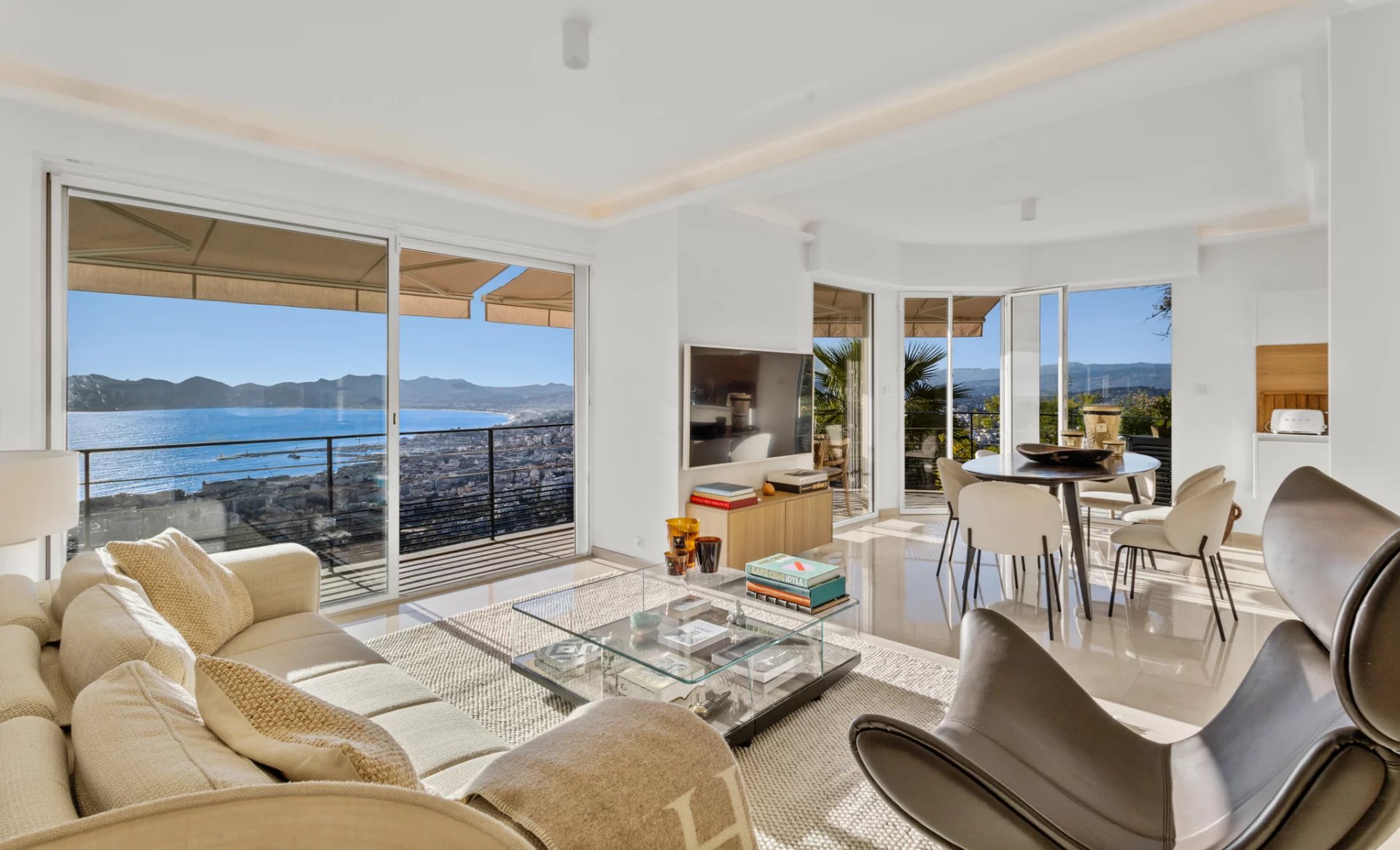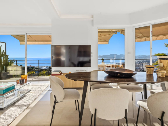 Sur la colline de la Californie, au sein d’une petite résidence récente et intimiste de seulement 5 copropriétaires, découvrez ce magnifique appartement d’environ 72 m² entièrement rénové, offrant une vue panoramique exceptionnelle à 360° sur la mer, les îles de Lérins, le bassin cannois et le massif de l’Esterel.