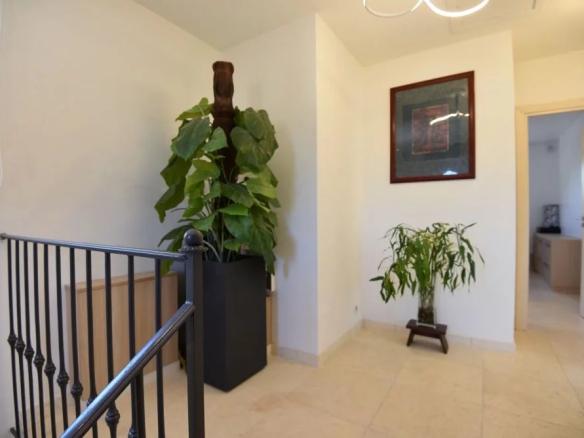 Le rez-de-chaussée s’ouvre sur une belle entrée menant à un espace de vie particulièrement généreux. Le séjour, spacieux et baigné de lumière, profite de larges ouvertures sur les terrasses et le jardin, créant une atmosphère chaleureuse et accueillante.