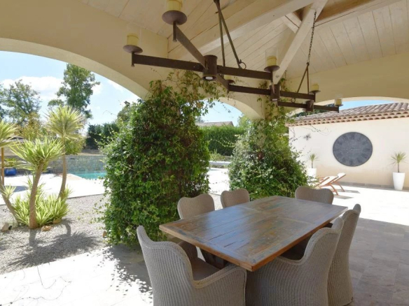 Les terrasses entourant la maison permettent de profiter pleinement du climat méditerranéen pour les repas en extérieur et les moments de détente.