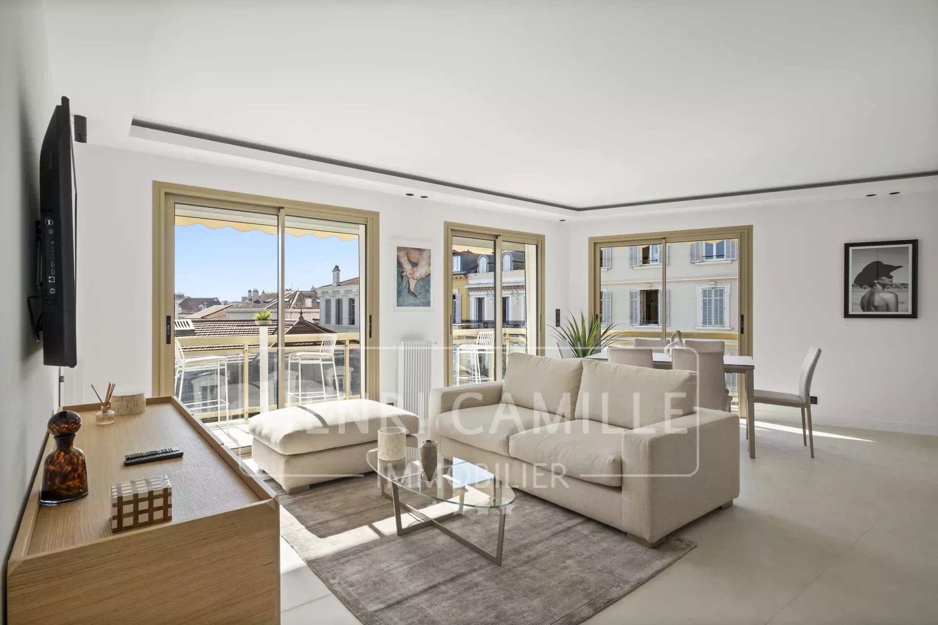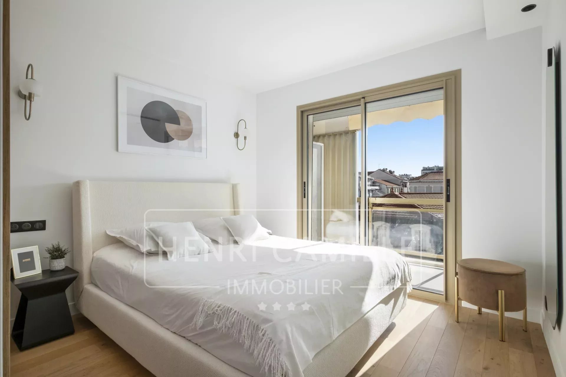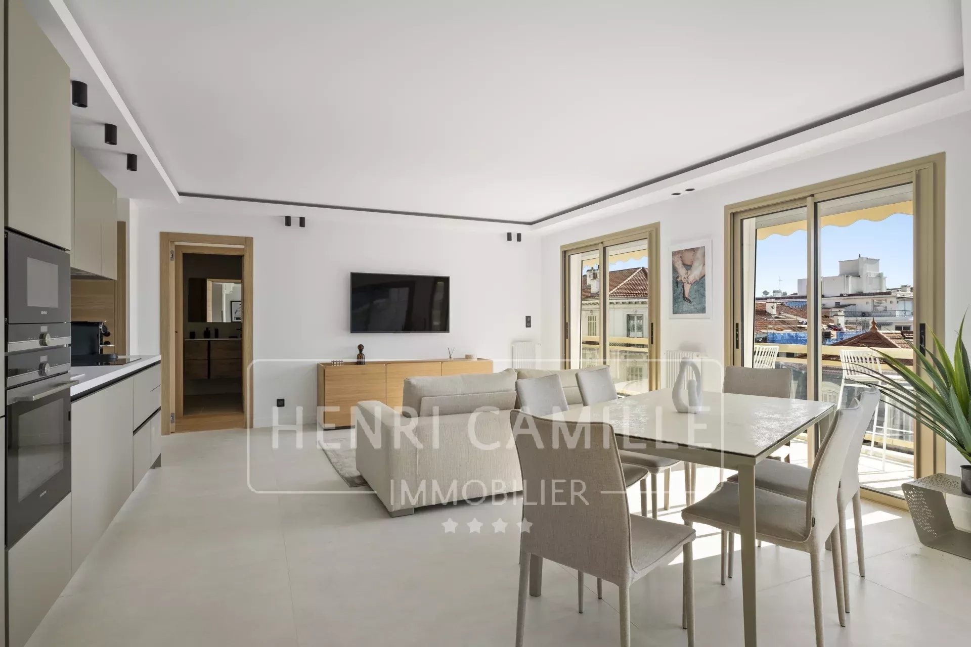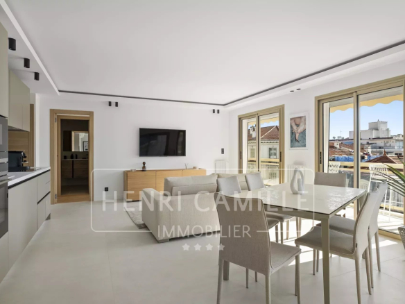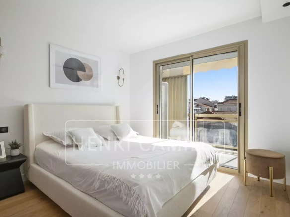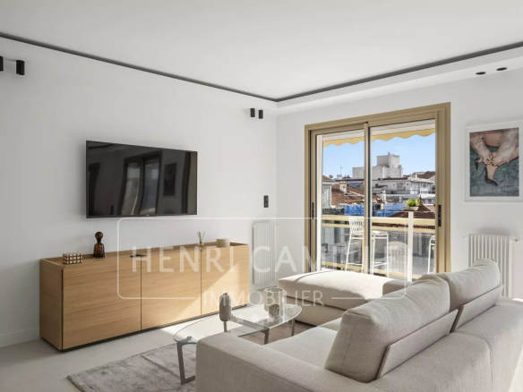 En plein cœur de Cannes, magnifique 3 pièces rénové en étage élevé ouvrant sur une terrasse d’angle Sud et Ouest de 15 m². Très lumineux, rénové avec des prestations de luxe, l’appartement bénéficie d’une belle vue dégagée. Cave.