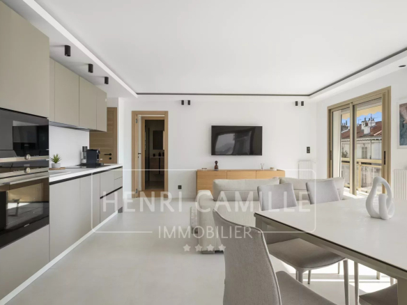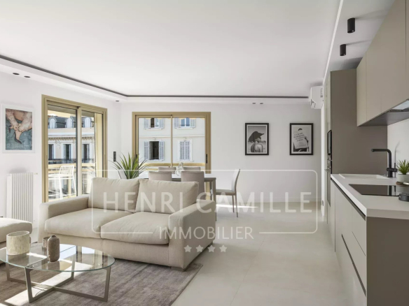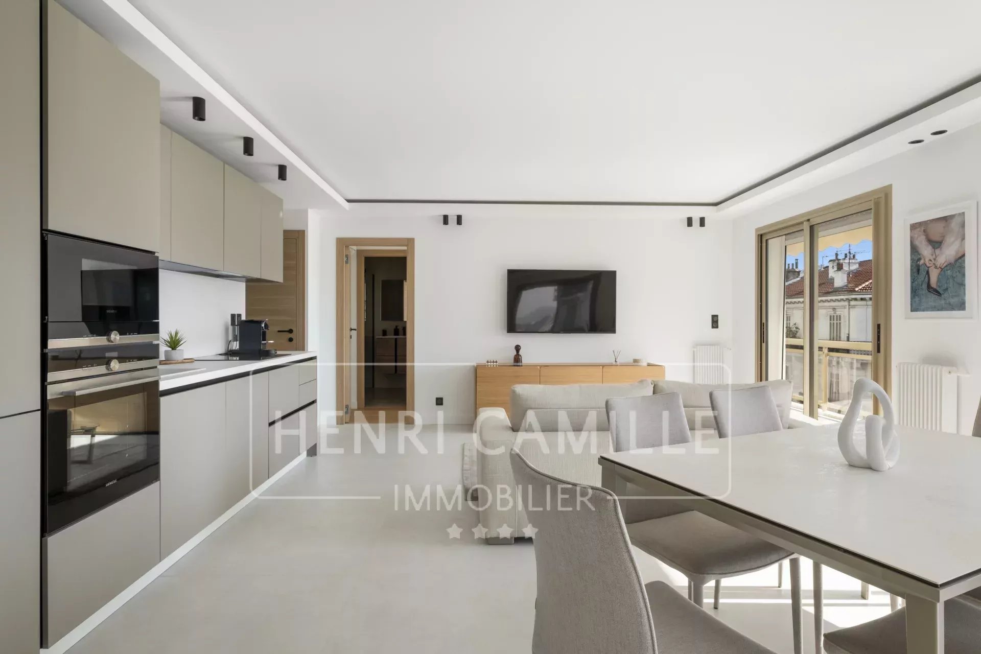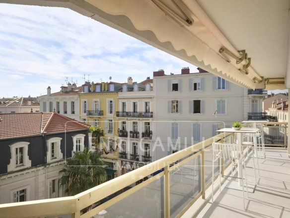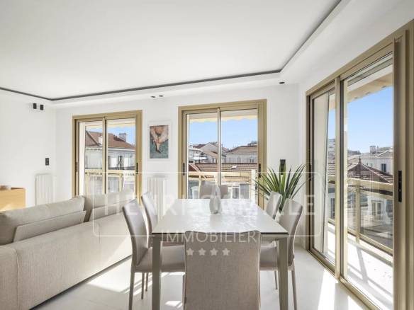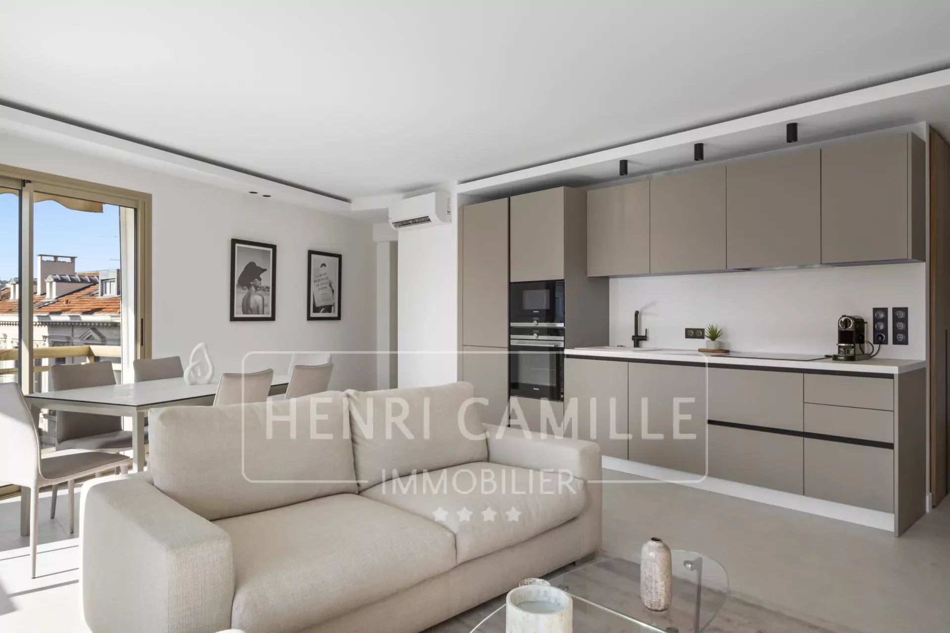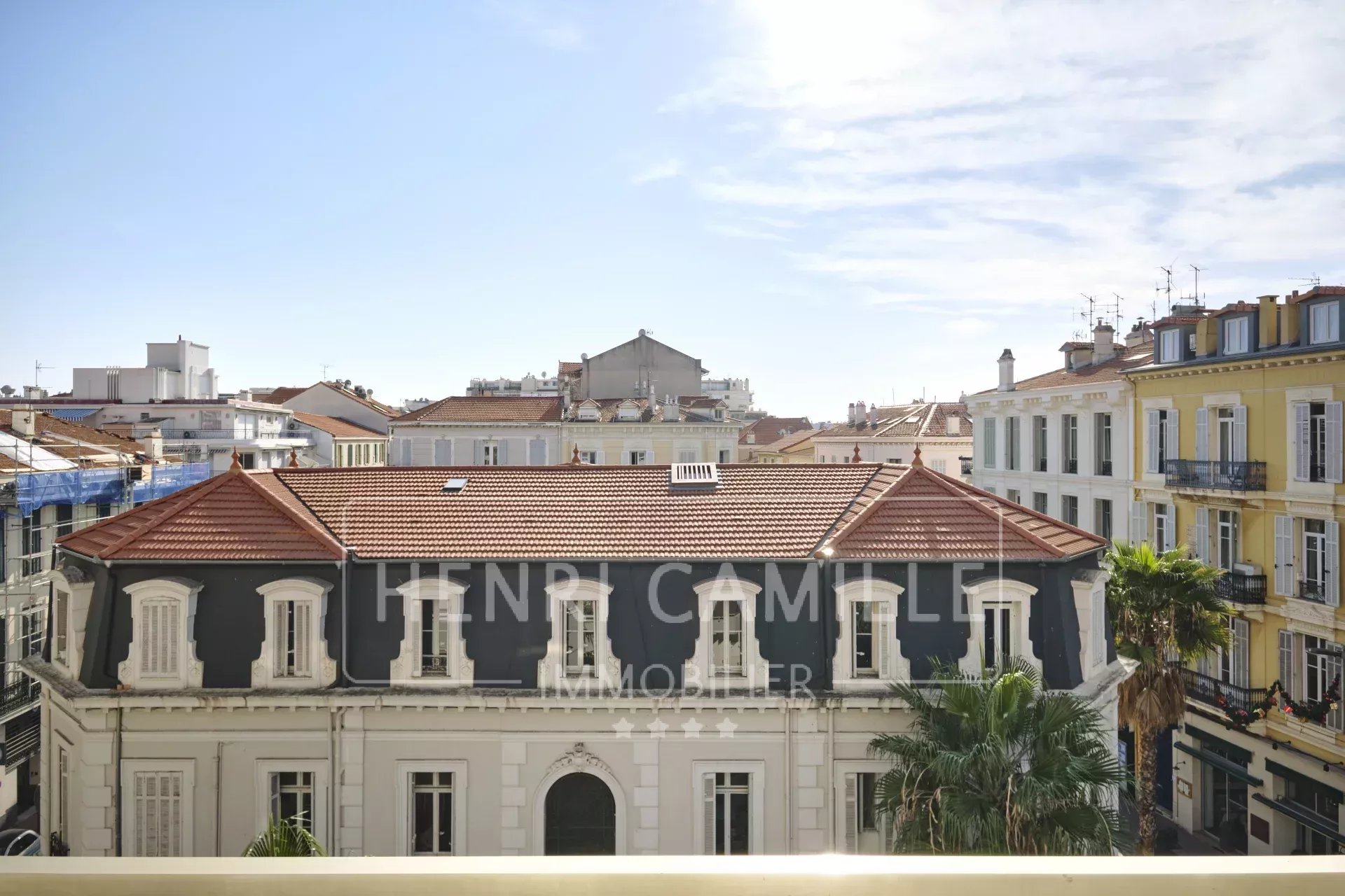 En plein cœur de Cannes, magnifique 3 pièces rénové en étage élevé ouvrant sur une terrasse d’angle Sud et Ouest de 15 m². Très lumineux, rénové avec des prestations de luxe, l’appartement bénéficie d’une belle vue dégagée. Cave.