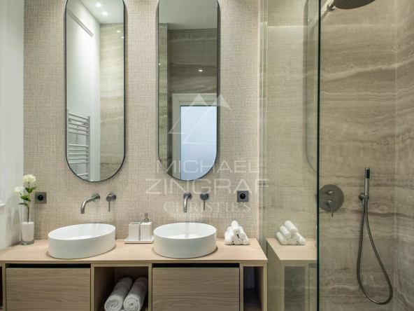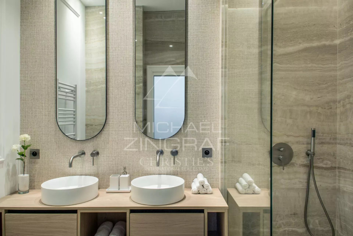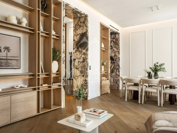 Situé en plein cœur du centre-ville, au pied des commerces et à deux pas de la Croisette, Rare appartements 5 pièces de 119 m² entièrement refait à neuf par architecte comprenant hall d’entrée, double séjour, cuisine américaine équipée, 4 belles chambres en suite, toilette invités.