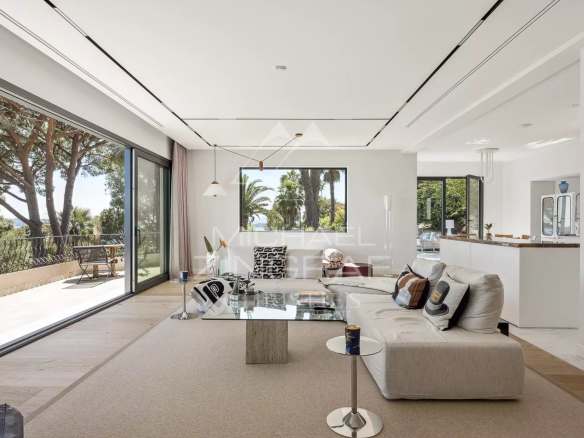 Entièrement rénovée avec des matériaux de grande qualité, la propriété développe environ 289 m² de surfaces lumineuses, ouvertes sur un panorama à couper le souffle embrassant le Cap d’Antibes, les îles de Lérins et le Palm Beach.