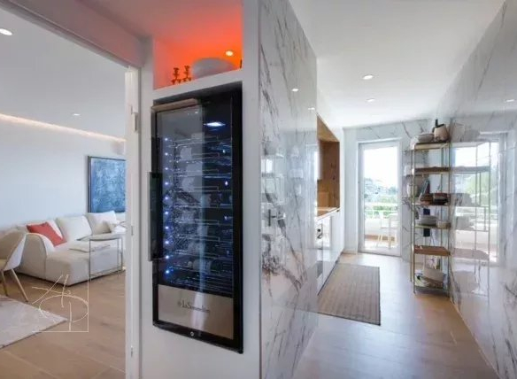 Dans le secteur ultra résidentiel de la basse Californie, découvrez ce magnifique 3 pièces vue mer époustouflante depuis sa très belle terrasse profonde de plus 26.50m2 dans une résidence emblématique du secteur de la Basse Californie, plages, commerces et centre ville à pied. L’appartement a été entièrement rénové avec des matériaux haut de gamme et se compose comme suit: d’un hall d’entrée, spatiaux séjour prolongé de sa terrasse, une cuisine indépendante intégralement équipée accès direct également sur la terrasse, deux belles chambres vue mer panoramique avec pour chacune un placard de rangement, une belle salle de douche, vasque, wc. Copropriété sécurisée avec gardien, très jolies parties communes, quelques places disponibles et sécurisées pour les invités. Bus devant la résidence, plages à 5 minutes à pied; boulangerie à 30m et supermarché à 100m. Idéal résidence principale ou secondaire pour profiter de Cannes, la croisette, sans utiliser la voiture. L’appartement est vendu avec un box au sous sol de la résidence ( accès direct depuis l’ascenseur et une cave. Coup de coeur assuré!!