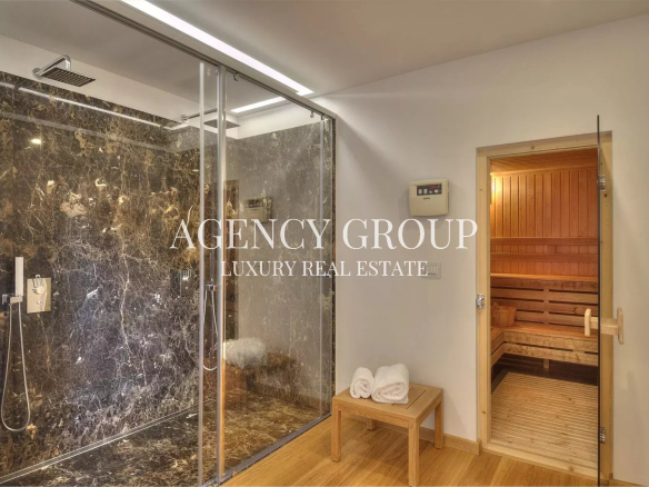 La villa principale dispose d’une majestueuse pièce de vie avec un vaste salon, une salle à manger dominant toute la baie, une cuisine équipée et 2 chambres de maitre, l’ensemble tourné vers la vue panoramique et la piscine à débordement. La demeure est complétée par 9 suites invités avec salle de bains et dressing.
