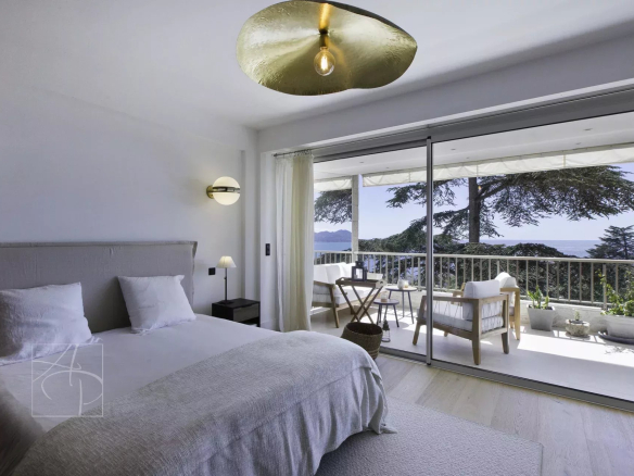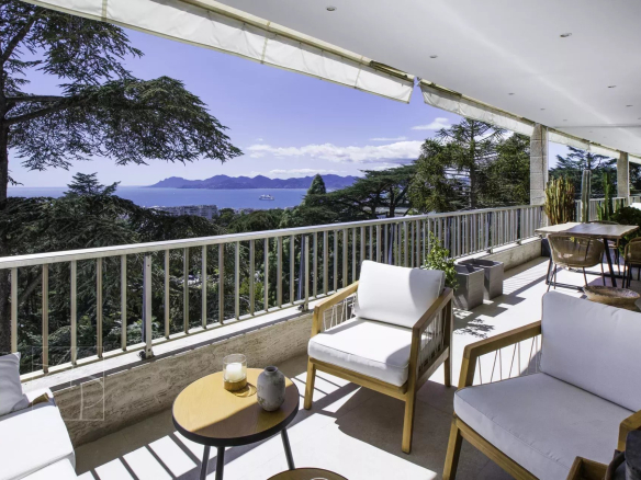 Situé en plein coeur du quartier ultra résidentiel et recherché de Cannes Californie , au sein d’une prestigieuse résidence avec service conciergerie 24-24h et navette privée desservant le centre ville de Cannes. Appartement d’exception en étage élevé de 104.83 m2 loi carrez (habitable 113.63m2+ une loggia buanderie de 3.66m2) ouvrant sur une large et belle terrasse exposée sud sud-ouest d’environ 22.36m2, vue mer panoramique des iles de Lérins jusqu’à l’Estérel. Il se compose d’un spacieux séjour/ salle à manger , une cuisine américaine équipée haut de gamme ouverte, 3 belles chambres en suite avec chacune sa salle de douche bain. La Master ouverte sur la terrasse vous offre une vue à 180° sur la mer et les collines de l’Esterel au calme absolu. Nombreux rangements. Ce bien rare aux prestations raffinées est idéal pour y vivre confortablement à l’année ou en résidence secondaire. Il est vendu avec un garage et une cave.