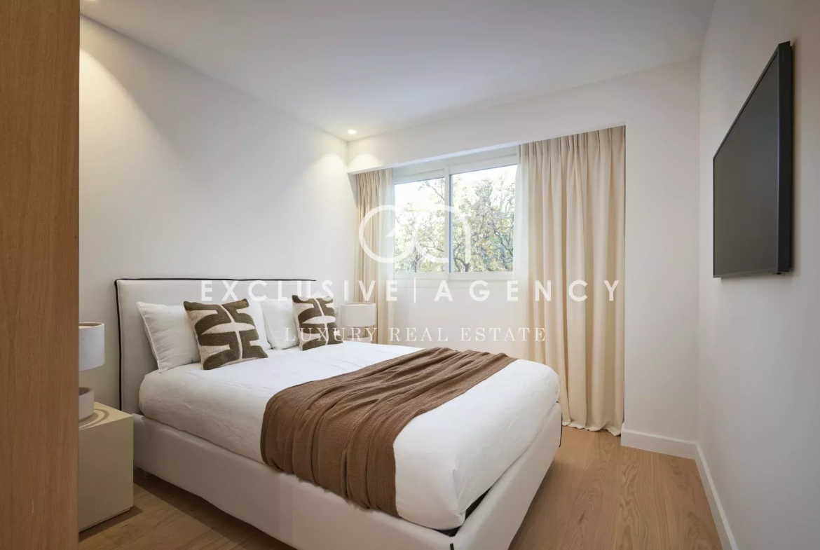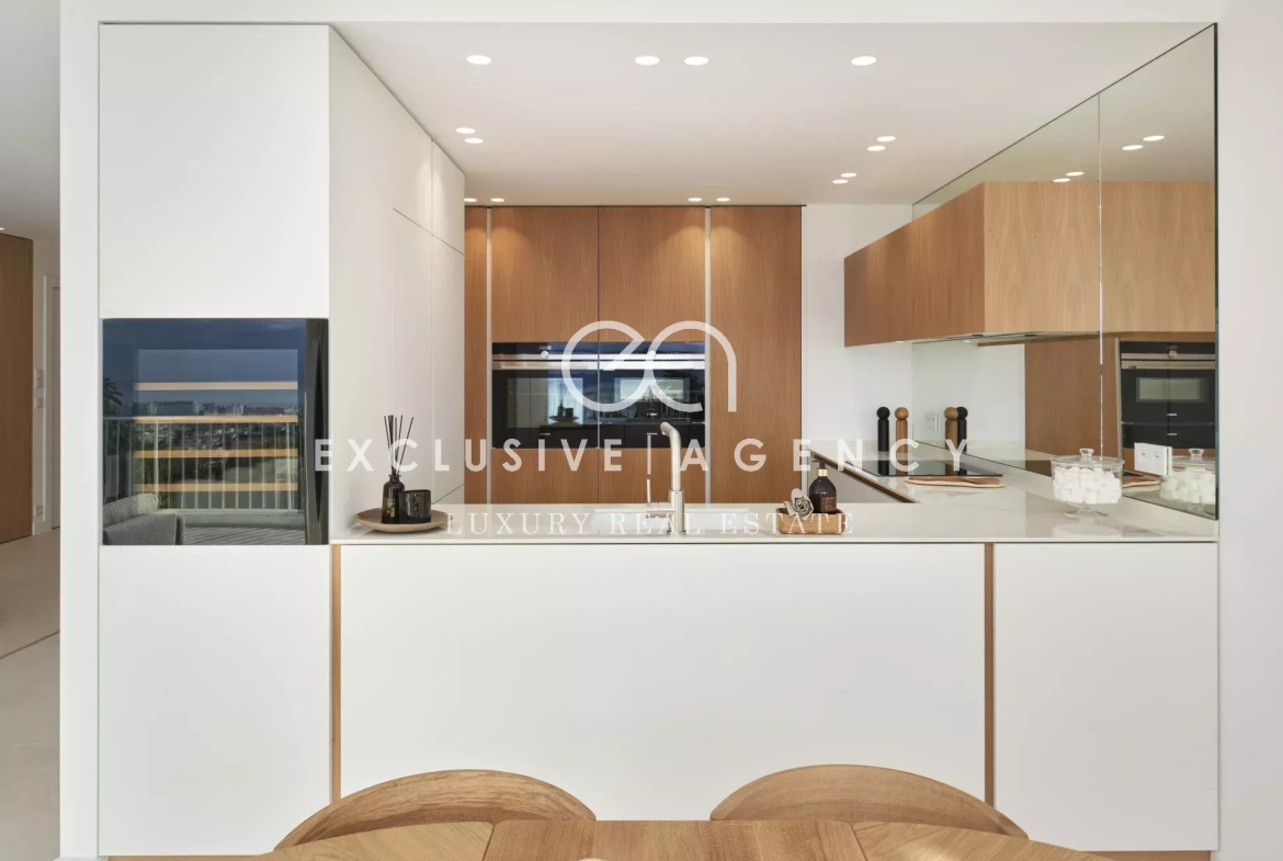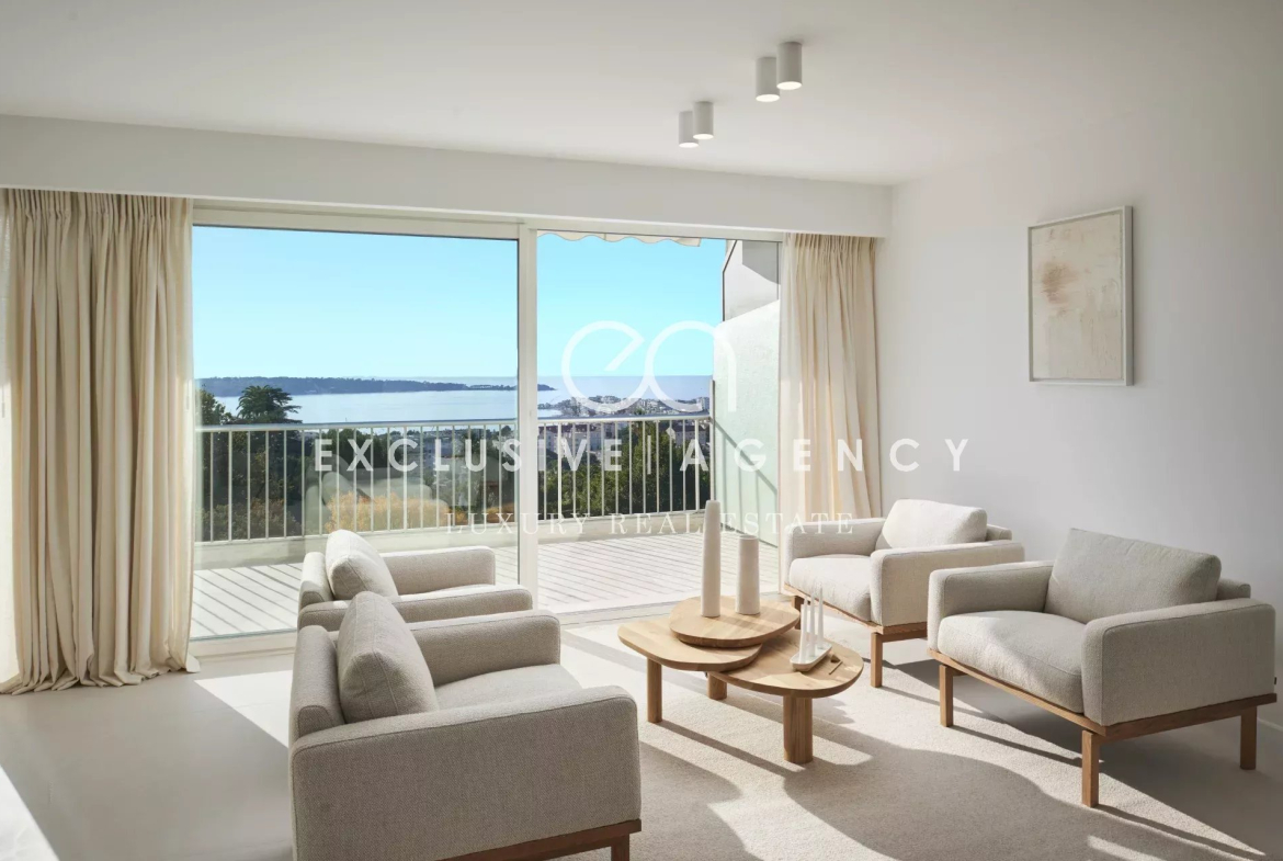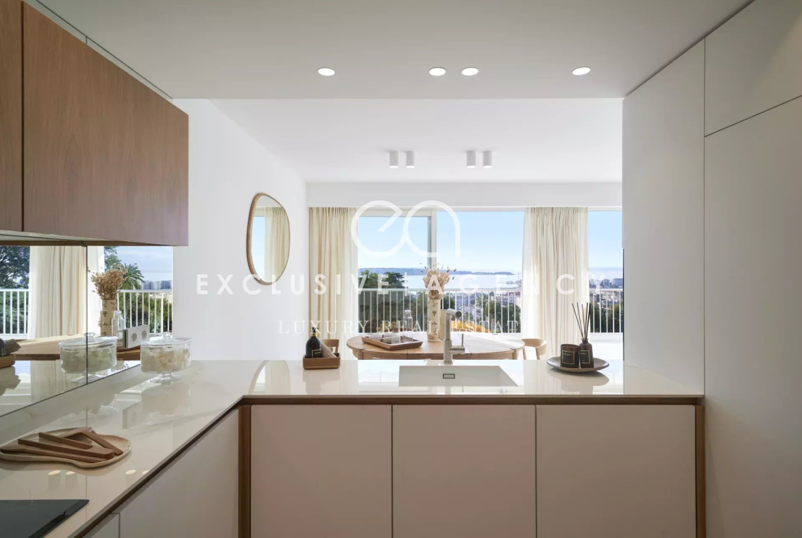 Un appartement 4 pièces, traversant, de 119.47m², il se compose d’une grande pièce de vie lumineuse, trois chambres, deux salles de bains et une toilette invitée. Le tout entièrement rénové avec une terrasse de 18m² avec vue mer panoramique.