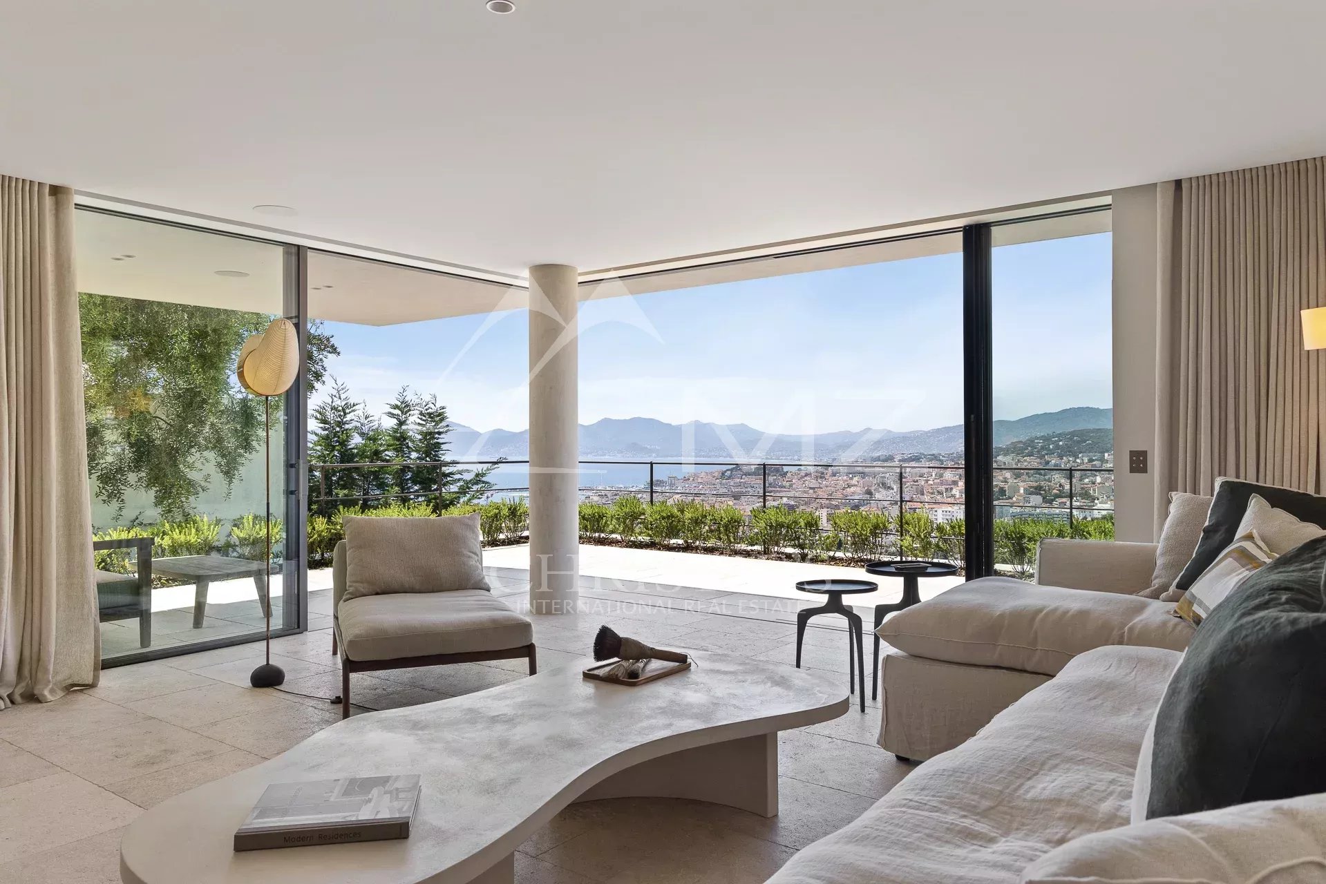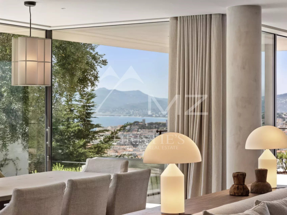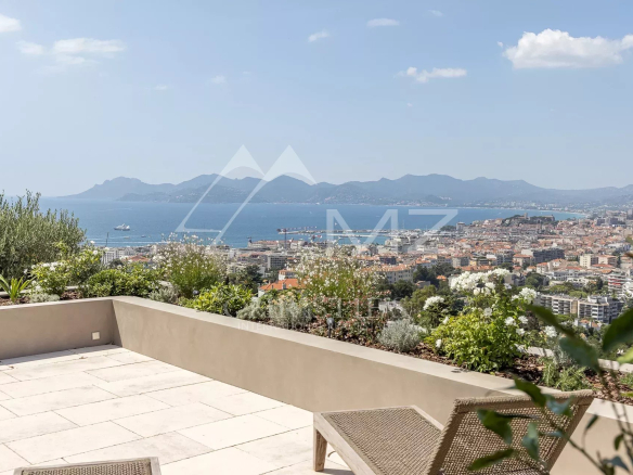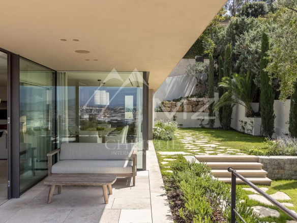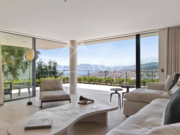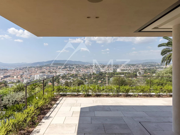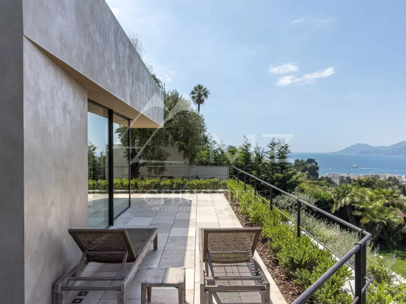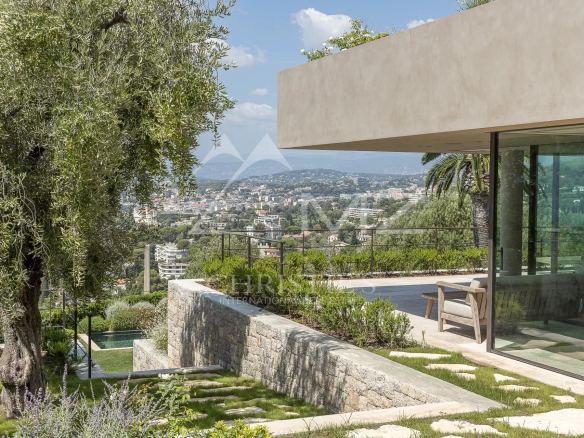 Rare, à quelques minutes du centre ville de Cannes, au cœur d’un domaine fermé, en position dominante, exceptionnelle propriété contemporaine neuve à la décoration raffinée, de 411m² environ. Offrant une vue mer panoramique sur la rade de Cannes et l’Estérel, 5 chambres en suite, salon, salle à manger, cuisine, salle de sport. Terrain avec piscine entièrement paysager d’essences Méditerranéennes.
