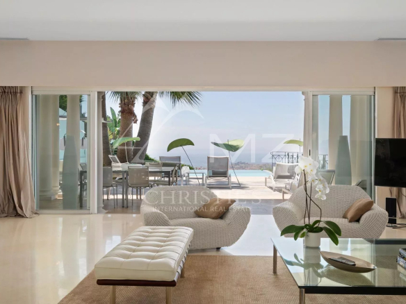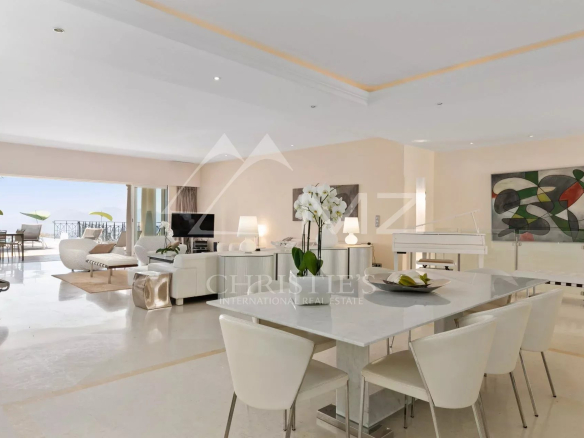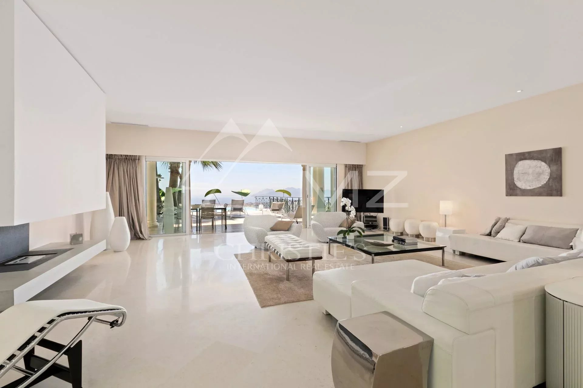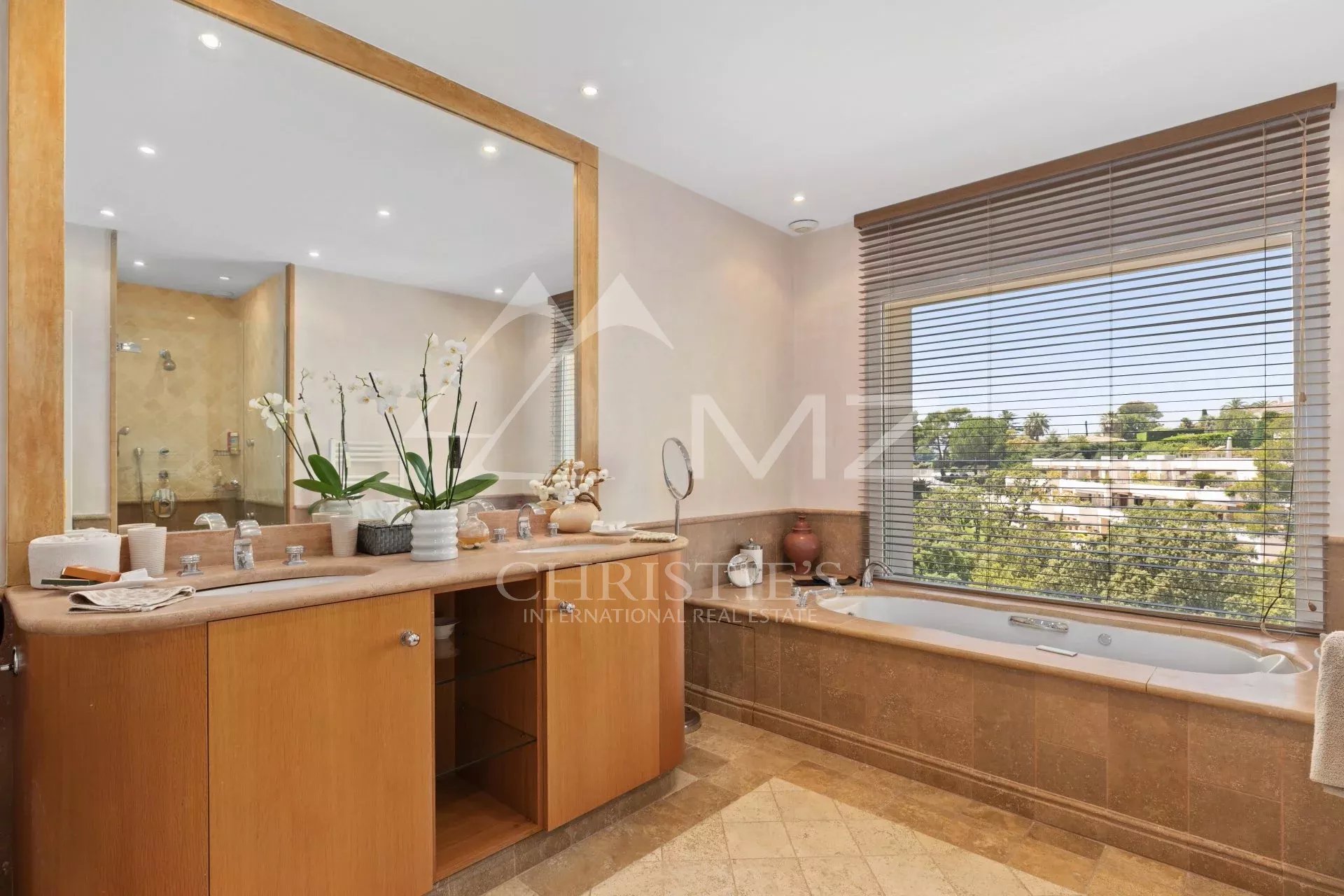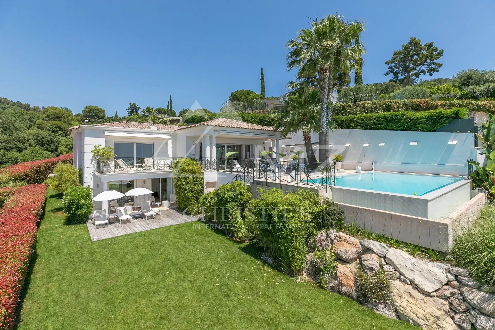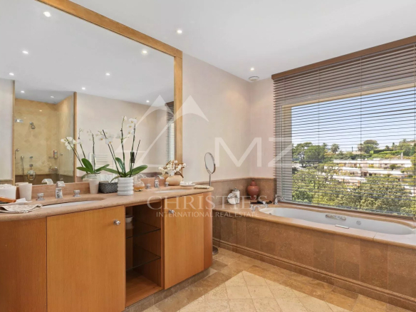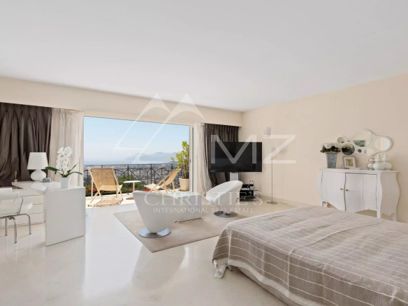 En position dominante, au cœur de la Californie, cette villa d’environ 350 m² avec vue mer exceptionnelle comprend : un vaste séjour avec accès piscine et vue mer, une cuisine équipée avec accès coursive staff et une chambre de maître avec dressing et salle de bains bal néo. Au rez-de-jardin : trois chambres en suite avec salle d’eau, une chambre avec une salle de bains, une buanderie, une salle de sport avec hammam/sauna et salle d’eau. Garage. Piscine chauffée à débordement. Terrain d’environ 2000 m². Deux chambres de service avec salle d’eau.