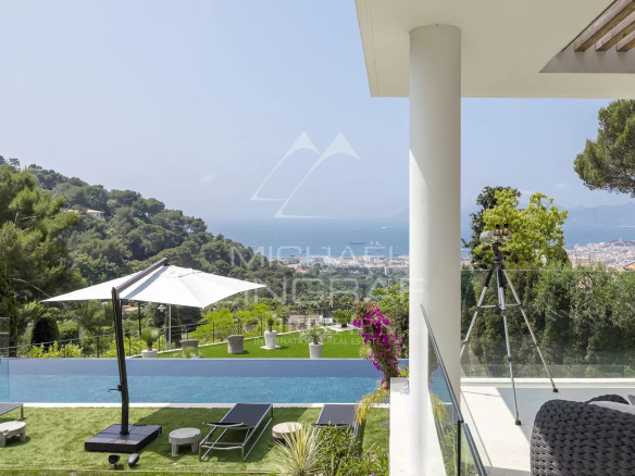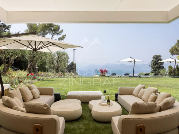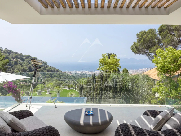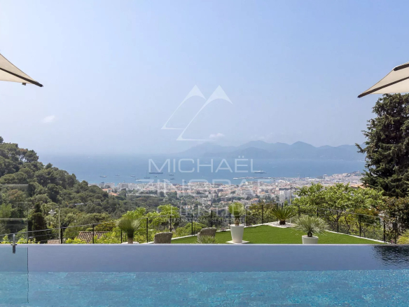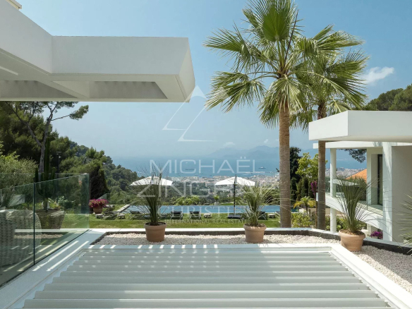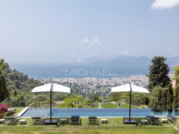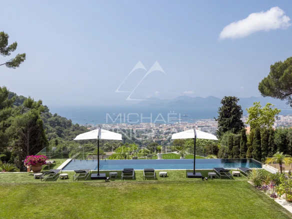 Rare. En plein cœur de la Californie, en position dominante surplombant la baie de Cannes et l’Estérel, propriété exceptionnelle de style contemporain entièrement et récemment rénovée par un architecte de renommé. Sur 660 m² environ, elle offre de beaux espaces de réception ouvrant sur de larges terrasses face à la mer, très beau jardin complanté, piscine. Appartement de gardien indépendant, salle de sport, sauna, hammam, cave à vin, 6 chambres en suite.