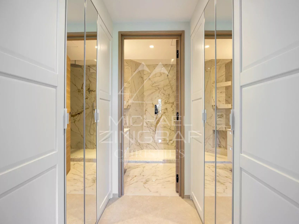 Cet appartement luxueusement rénové, se compose d’un grand séjour avec cuisine ouverte équipée, prolongé par une belle terrasse face à la mer, de 2 chambres en-suite avec salles de douches dont une avec toilettes ainsi qu’un toilette invités.