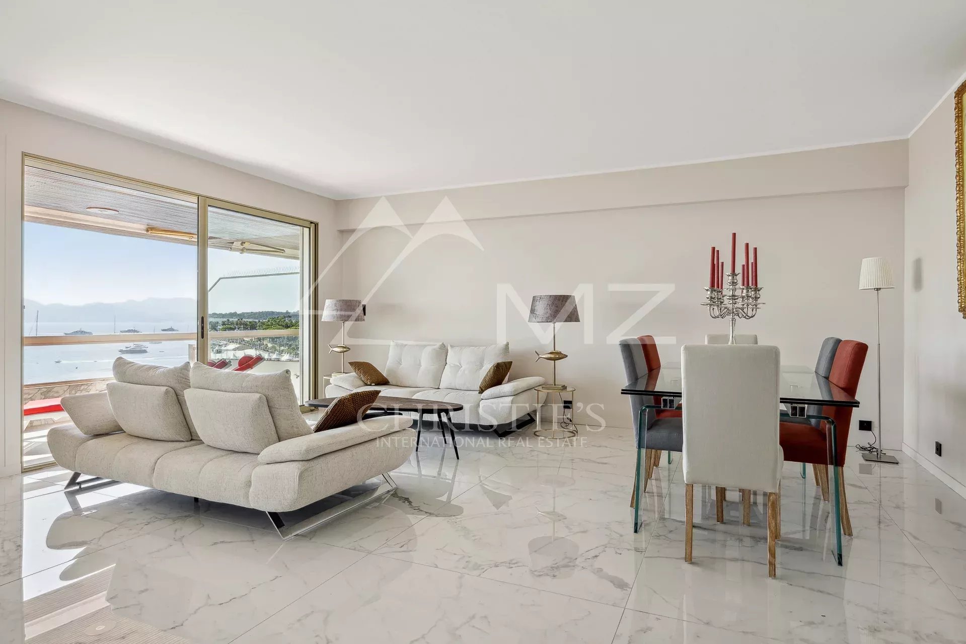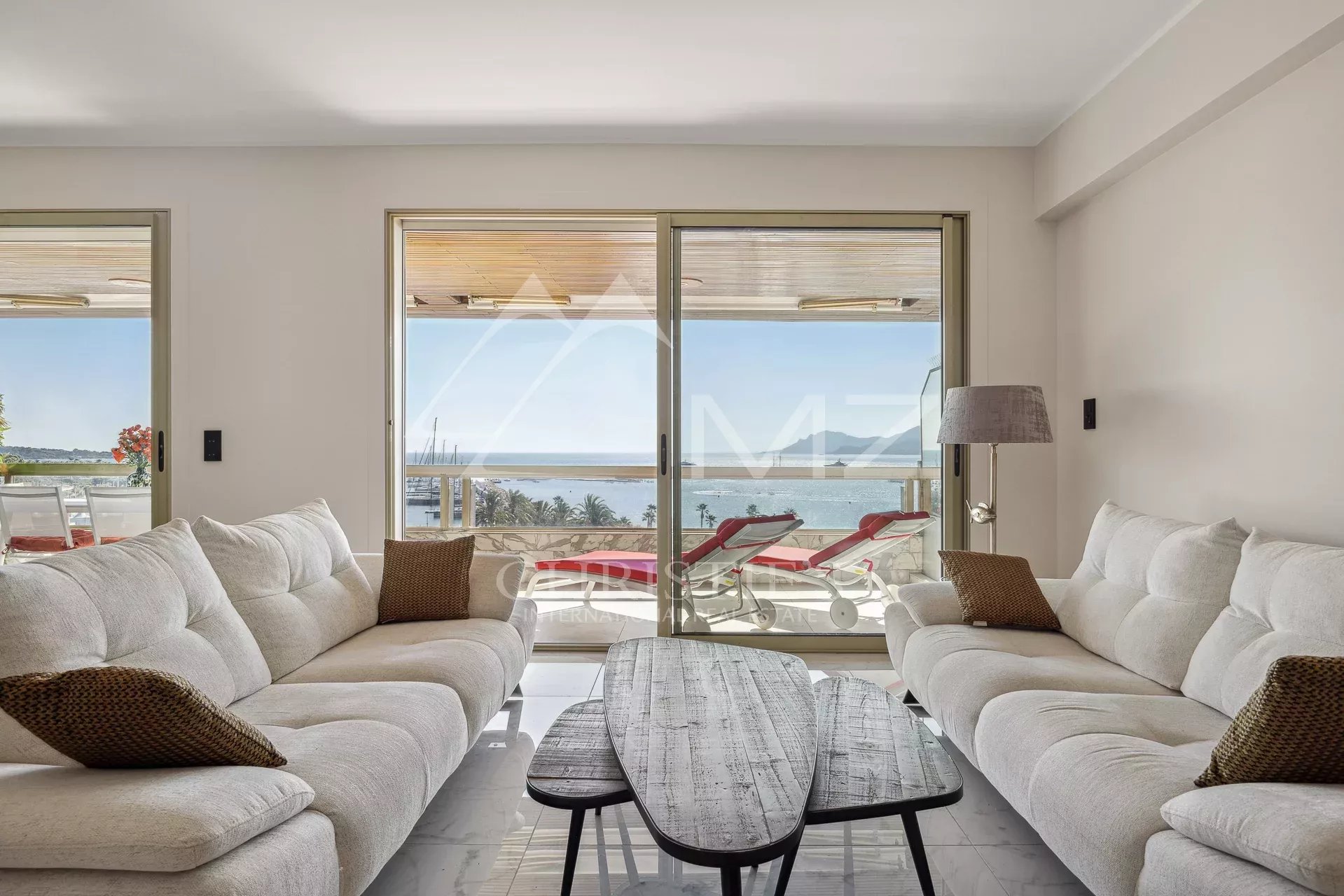 Magnifique appartement traversant en étage élevé, offrant une vue panoramique sur la Baie de Cannes.