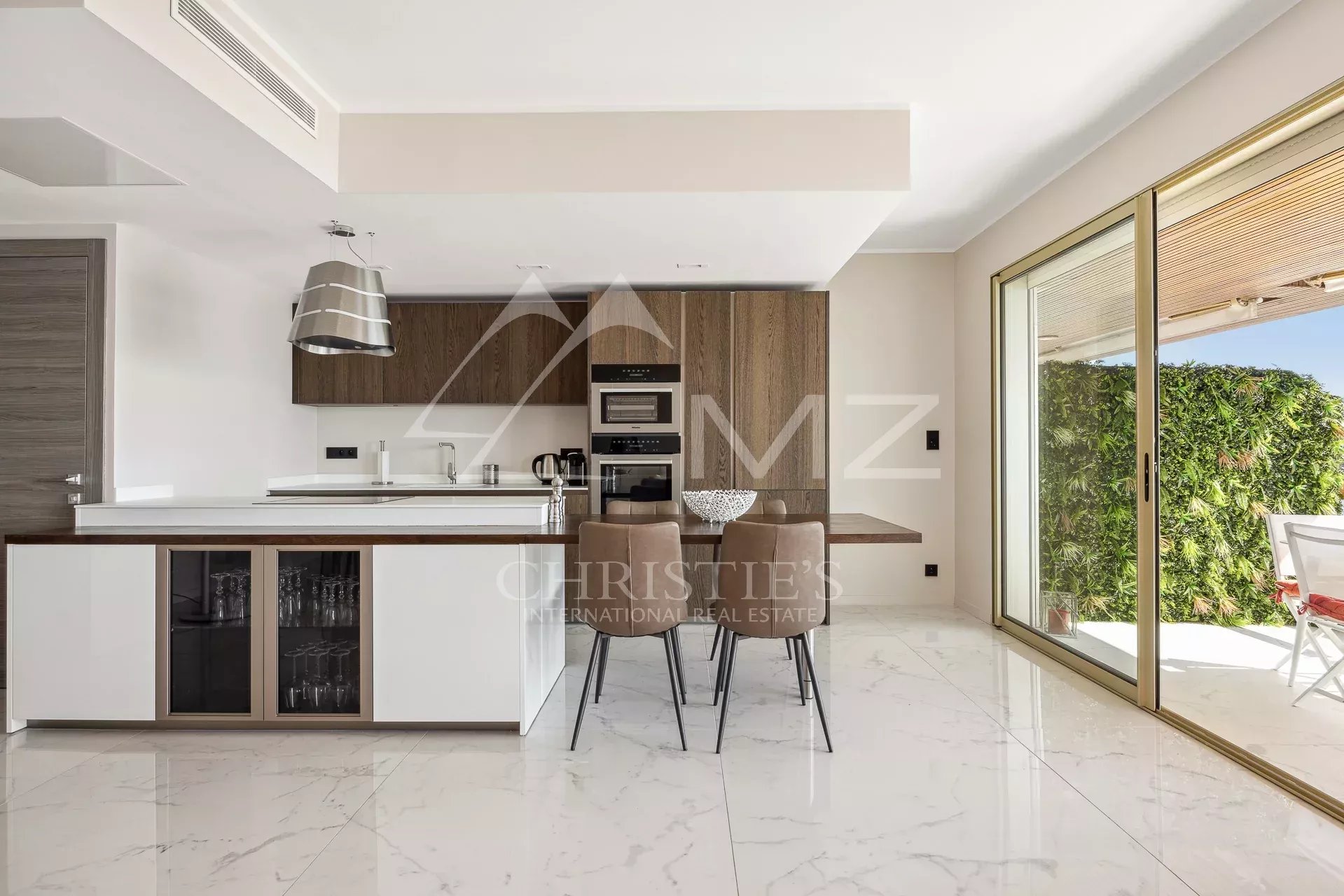 Spacieuse pièce de vie très lumineuse avec cuisine ouverte entièrement équipée donnant sur une belle terrasse d’environ 21 m2, deux chambres en suite.