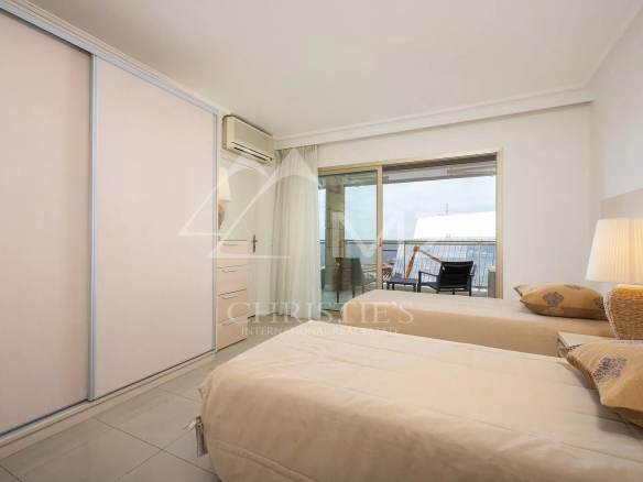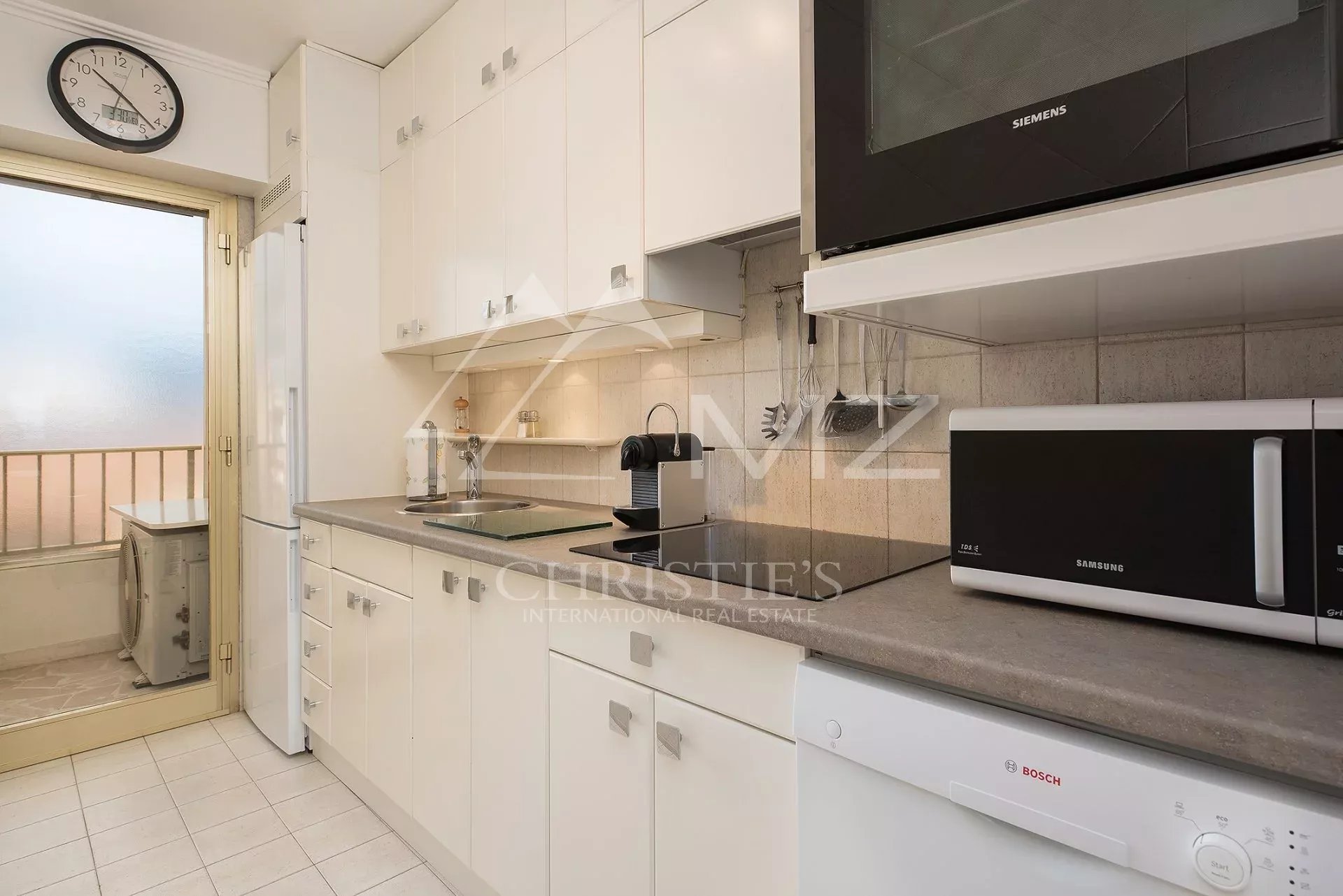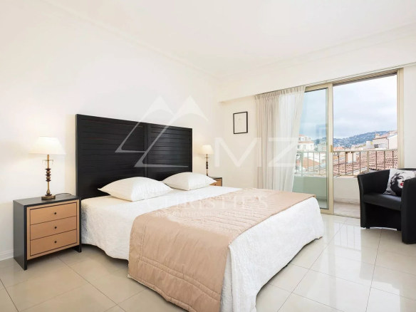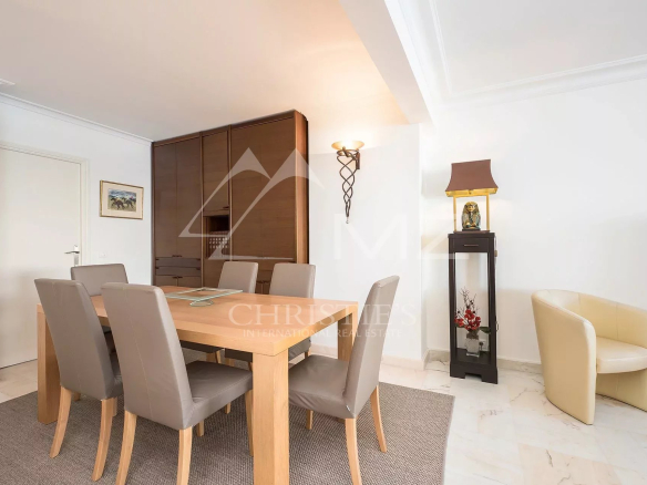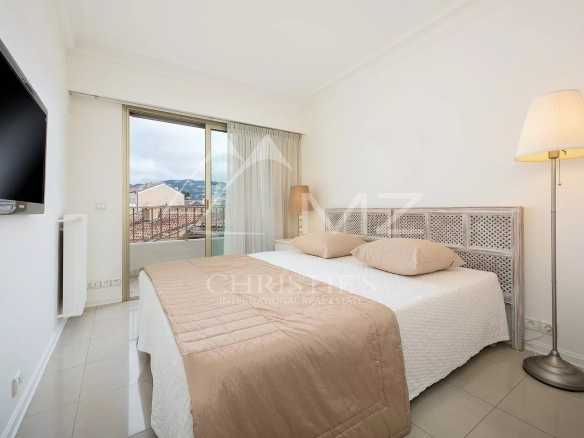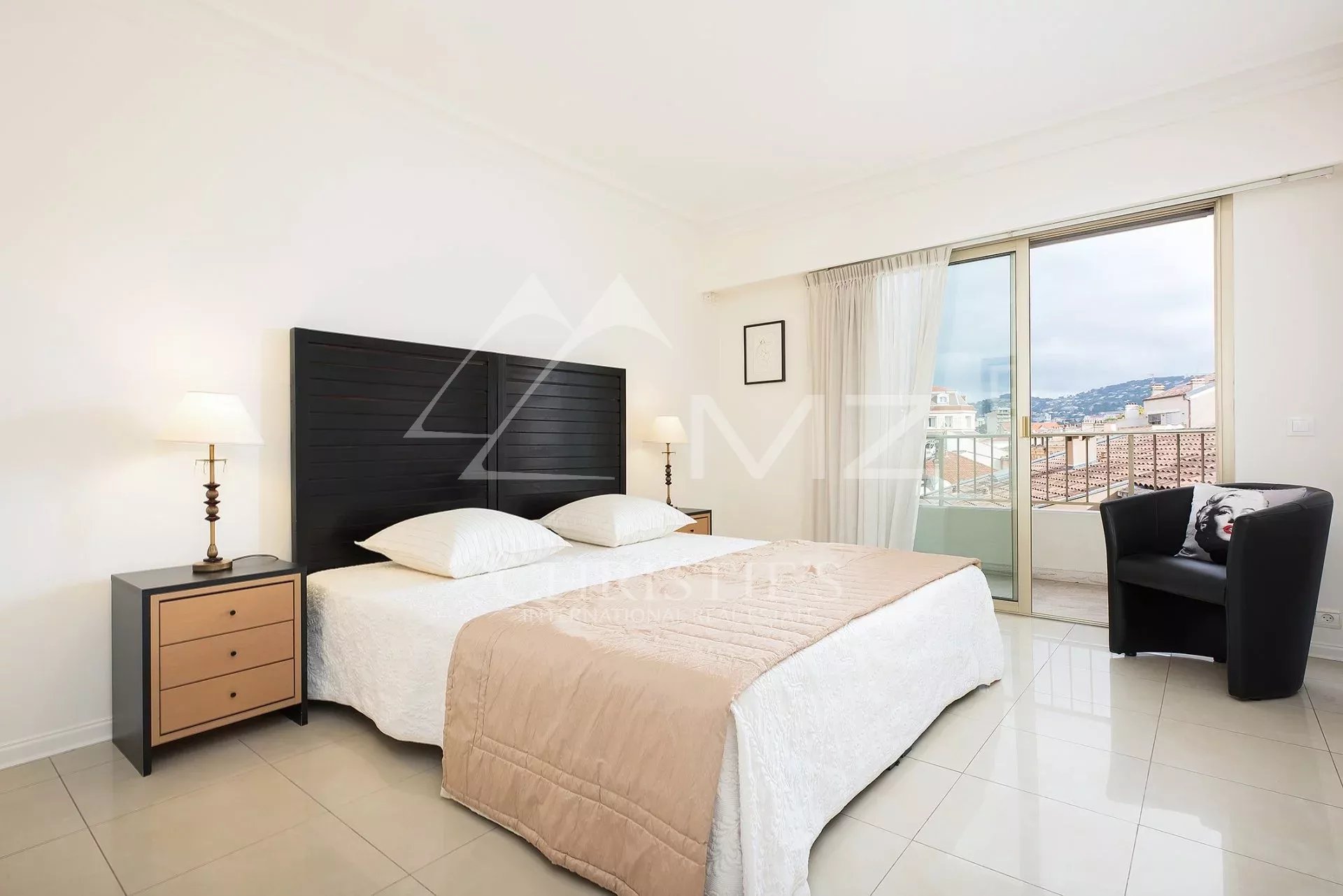 Idéalement situé en face du Palais des festivals, appartement de 110 m² environ avec vue mer et double terrasse, comprenant : un séjour avec accès terrasse, une cuisine équipée, deux chambres avec salles d’eau, une chambre avec salle de bains et une buanderie. Garage disponible. Prestations de qualité.