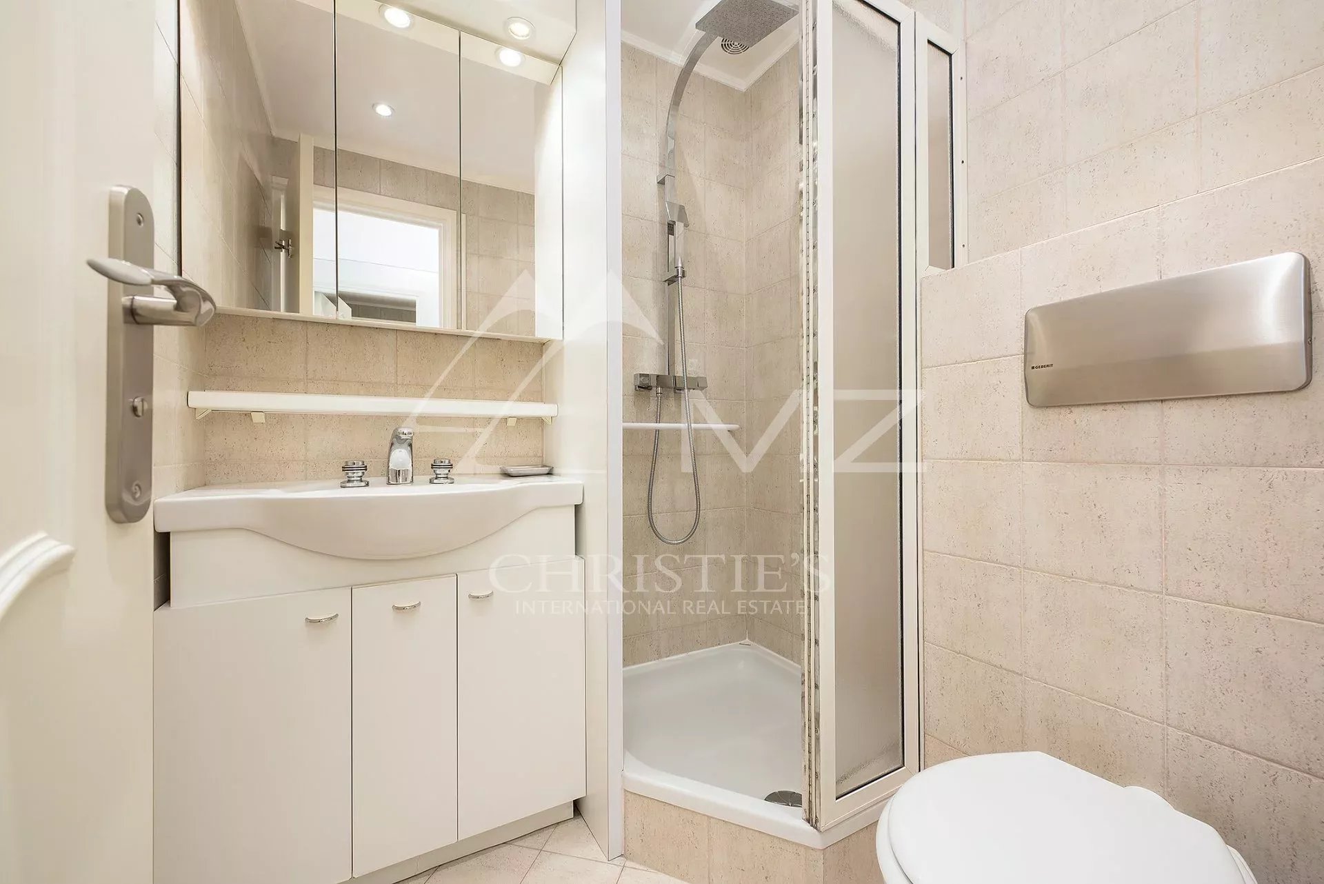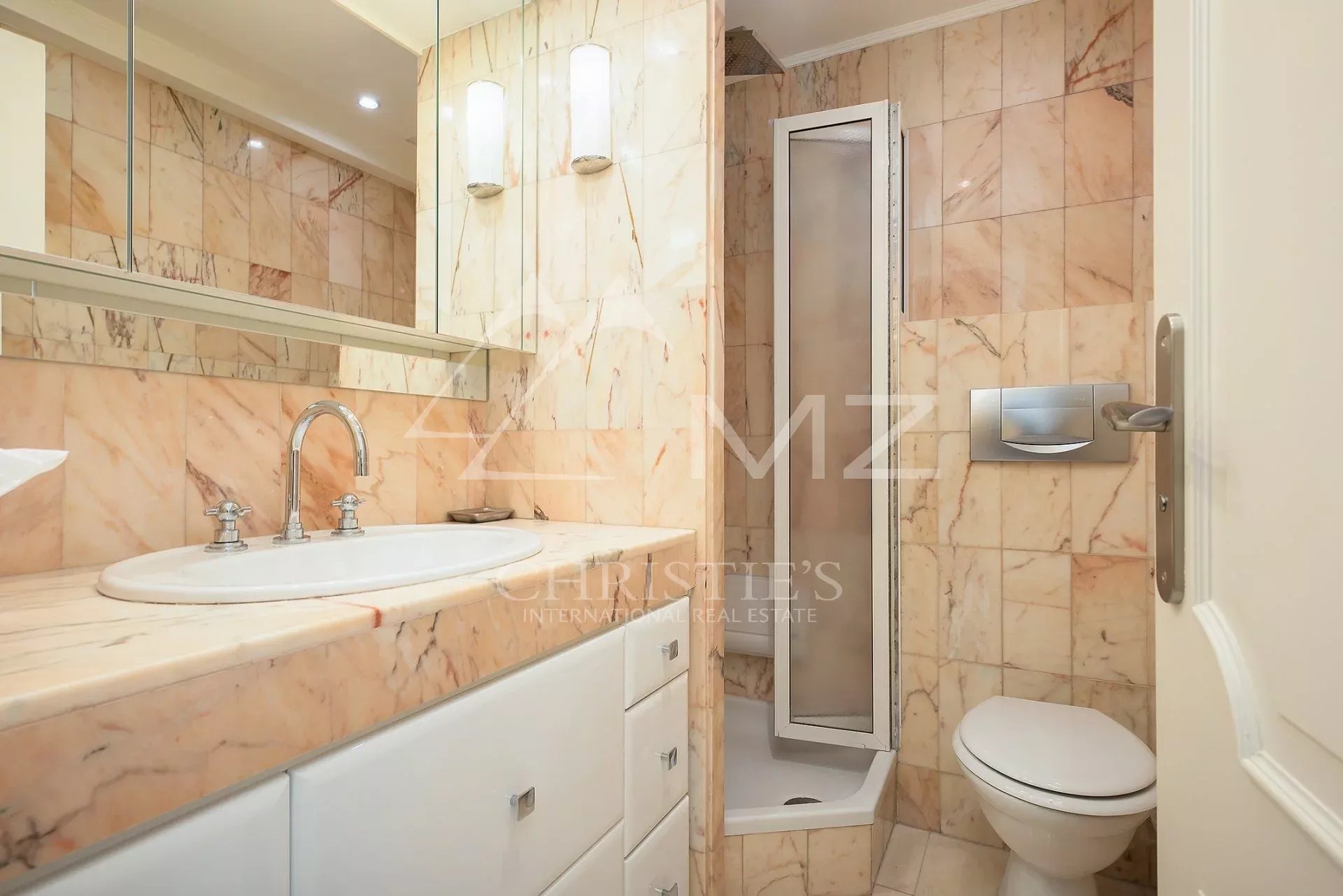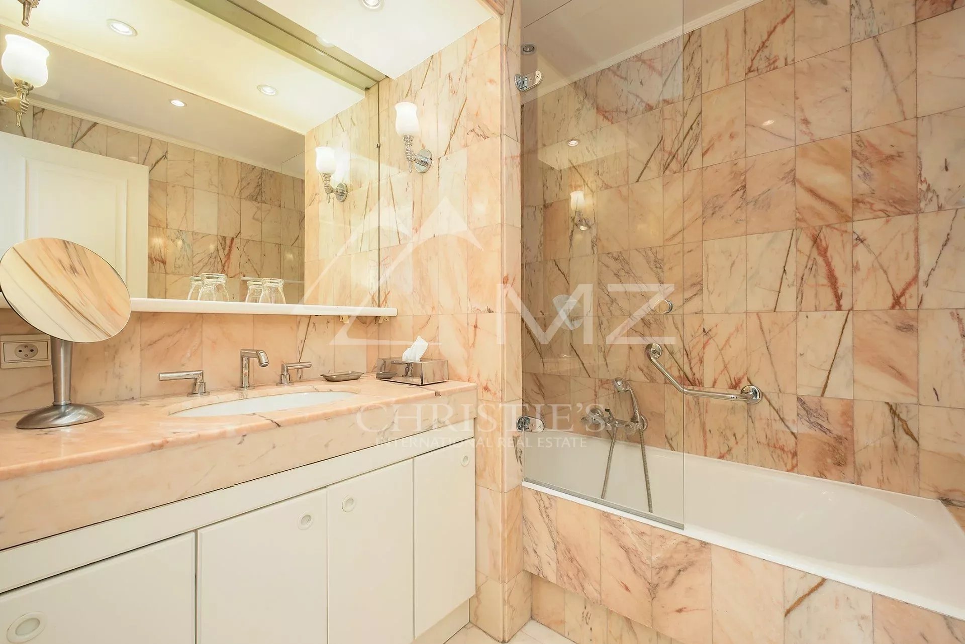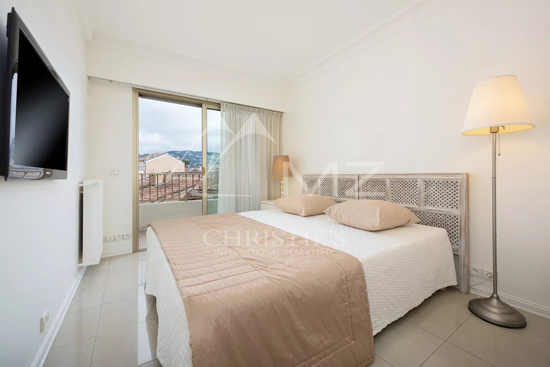 Idéalement situé en face du Palais des festivals, appartement de 110 m² environ avec vue mer et double terrasse, comprenant : un séjour avec accès terrasse, une cuisine équipée, deux chambres avec salles d’eau, une chambre avec salle de bains et une buanderie. Garage disponible. Prestations de qualité.