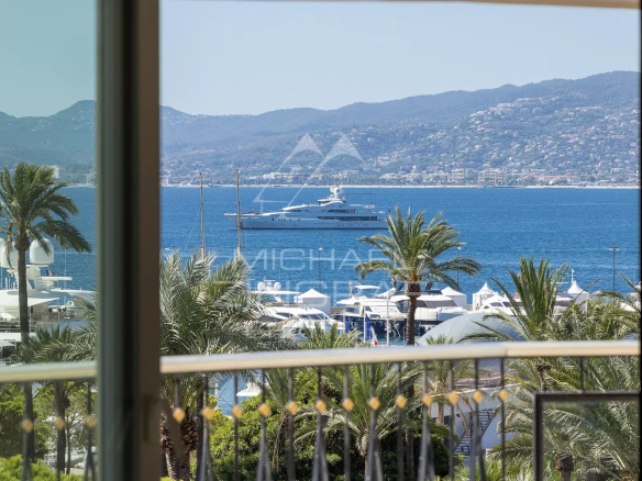 Dans un immeuble de renom situé sur la Croisette,face du Port Canto, très bel appartement lumineux, en étage élevé, lumineux d’environ 95m² bénéficiant d’une vue mer panoramique. Il se compose d’un séjour / salle manger, ouvrant sur une belle terrasse exposée ouest, d’une cuisine indépendante équipée, d’une chambre de maître avec dressing et salle de bains en suite, d’une deuxième chambre avec salle de douche.