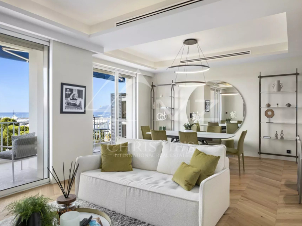 Situé au 5ᵉ étage d’une résidence de standing sur la Croisette, ce superbe appartement de réception de 100 m² offre une vue imprenable sur le Port Canto et la mer.