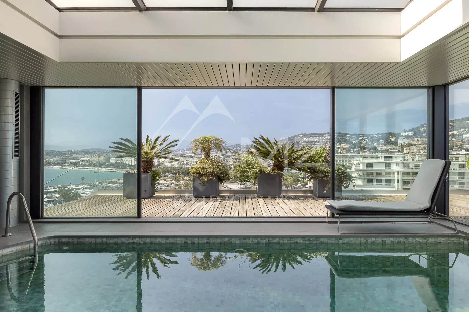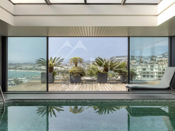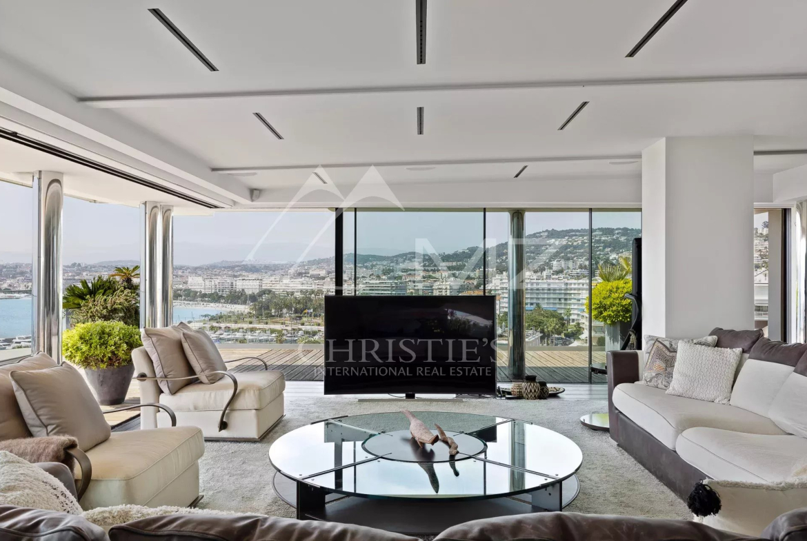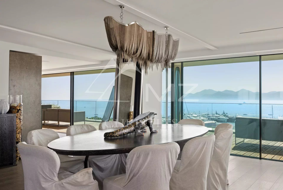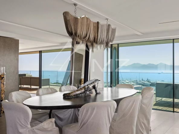 Ce somptueux penthouse situé en plein cœur de la Croisette, au sein d’une résidence prisée et sécurisée, est certainement l’un des biens les plus exceptionnels de Cannes. Les amoureux de design se délecteront avec ce pied-à-terre unique, moderne et épuré signé Pellerin. Sur deux niveaux, l’appartement s’étend sur environ 580 m2 jouissant des vues grandioses sur Cannes, l’Estérel et la Méditerranée.