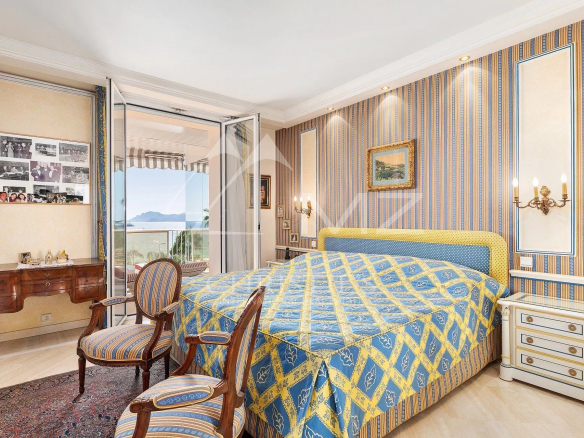 Au cœur de la Croisette entre le Carlton et le Martinez, dans une résidence de standing, majestueux appartement d’angle, situé au 3eme étage, d’environ 145m² composé d’un beau double séjour lumineux avec cuisine ouverte, de 3 chambres en suite, chacune avec placard intégré dont une chambre de maître ouvrant sur la terrasse orientée plein sud offrant une vue mer panoramique et bénéficiant de sublime coucher de soleil, idéale pour les repas en plein air et les bains de soleil. Stores électriques, climatisation, éclairage terrasse. L’appartement peut être séparé en deux appartements avec chacun leur accès privé.