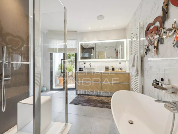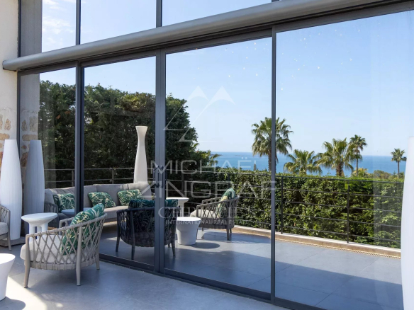 Récemment rénovée dans un esprit contemporain, la propriété développe environ 320 m² habitables et offre une vue imprenable sur la baie de Nice, le Cap d’Antibes et les îles de Lérins.