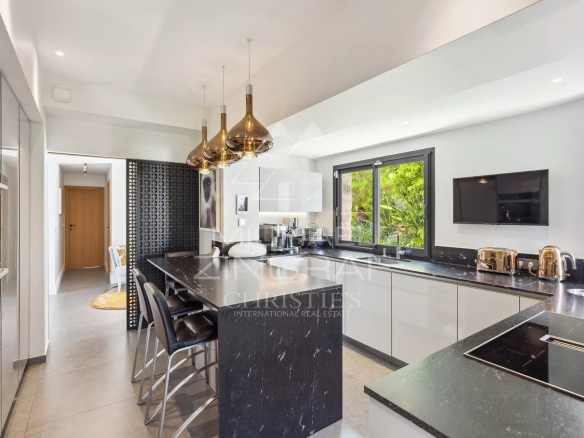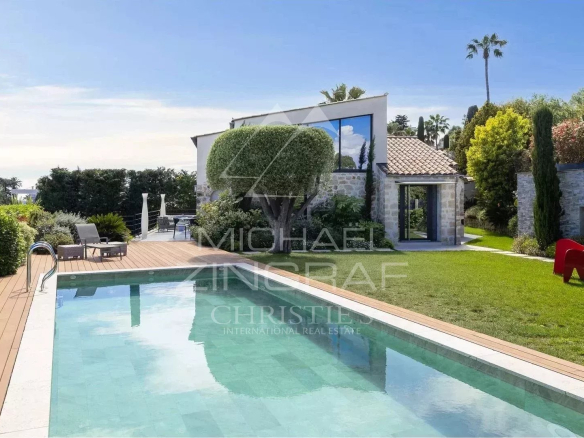 Récemment rénovée dans un esprit contemporain, la propriété développe environ 320 m² habitables et offre une vue imprenable sur la baie de Nice, le Cap d’Antibes et les îles de Lérins.