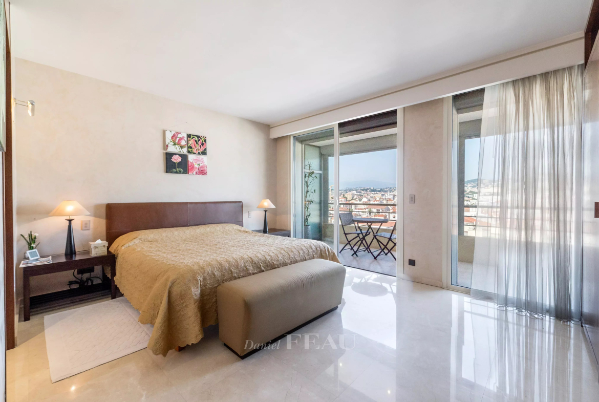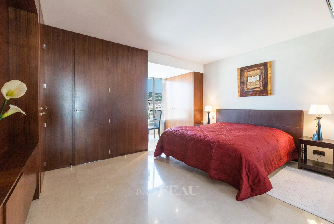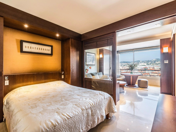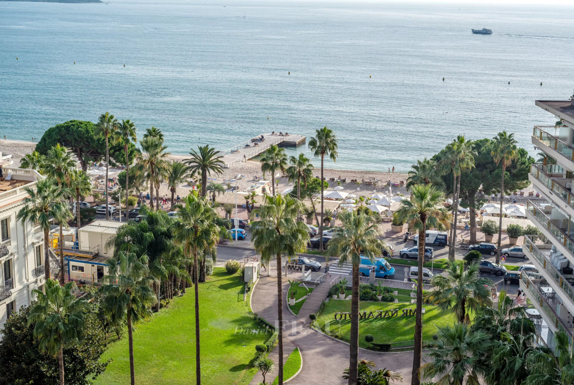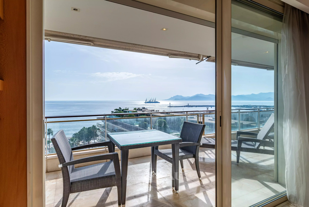Coeur Croisette, à deux pas du Palais des Festivals, exclusif appartement situé au 10ème étage dans une résidence de renom offrant une vue mer panoramique sur la mer Méditerranée.