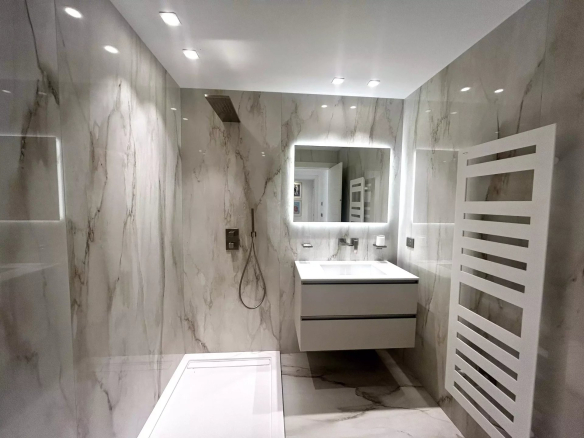 Entièrement rénové avec des finitions haut de gamme, l’appartement s’ouvre sur une entrée élégante menant à un double séjour lumineux avec un espace bureau discret. Cette superbe pièce à vivre est prolongée par une terrasse exposée plein sud offrant une vue dégagée jusqu’à la mer. La cuisine ouverte moderne est neuve et entièrement équipée.