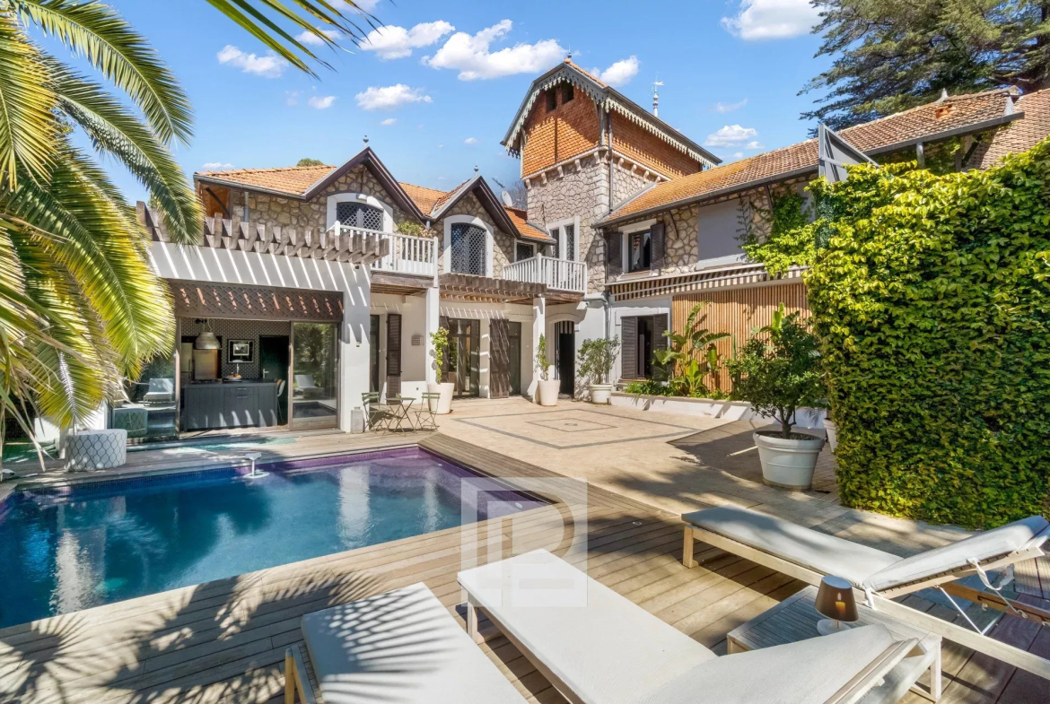 En plein cœur de Cannes, venez découvrir cette atypique demeure historique, entièrement revisitée avec un style “Baroque Chic” qui ne vous laissera pas indifférent ! Cette maison d’artiste vous offre une vaste réception prolongée par un véritable Bar en Zinc, un salon TV, une cuisine équipée + office, 4 chambres avec bains et dressing, une salle de sport et une buanderie. le tout niché au cœur d’une palmeraie de 685 m² avec une piscine chauffée et un superbe poolhouse. Parking 2 voitures.