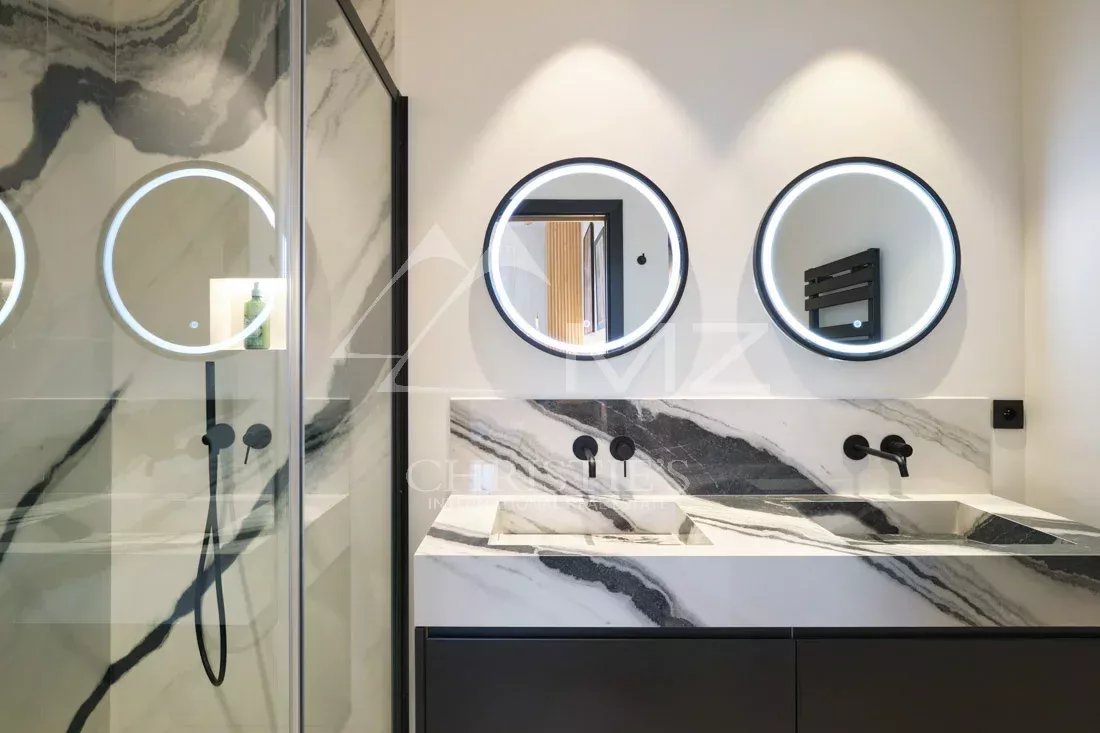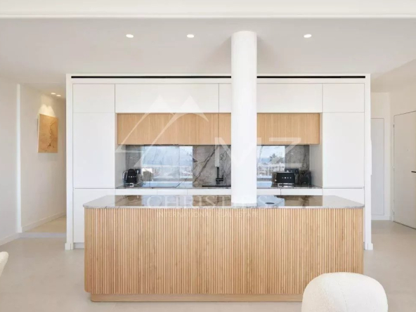 boulevard de la Croisette, cet appartement bénéficie d’une belle terrasse offrant une incroyable vue sur la baie de Cannes. Il comprend un salon séjour avec 2 baies à galandage, une cuisine sur mesure avec un îlot arrondi, 3 chambres en suite avec salles de douche. L’appartement propose des prestations raffinées et une