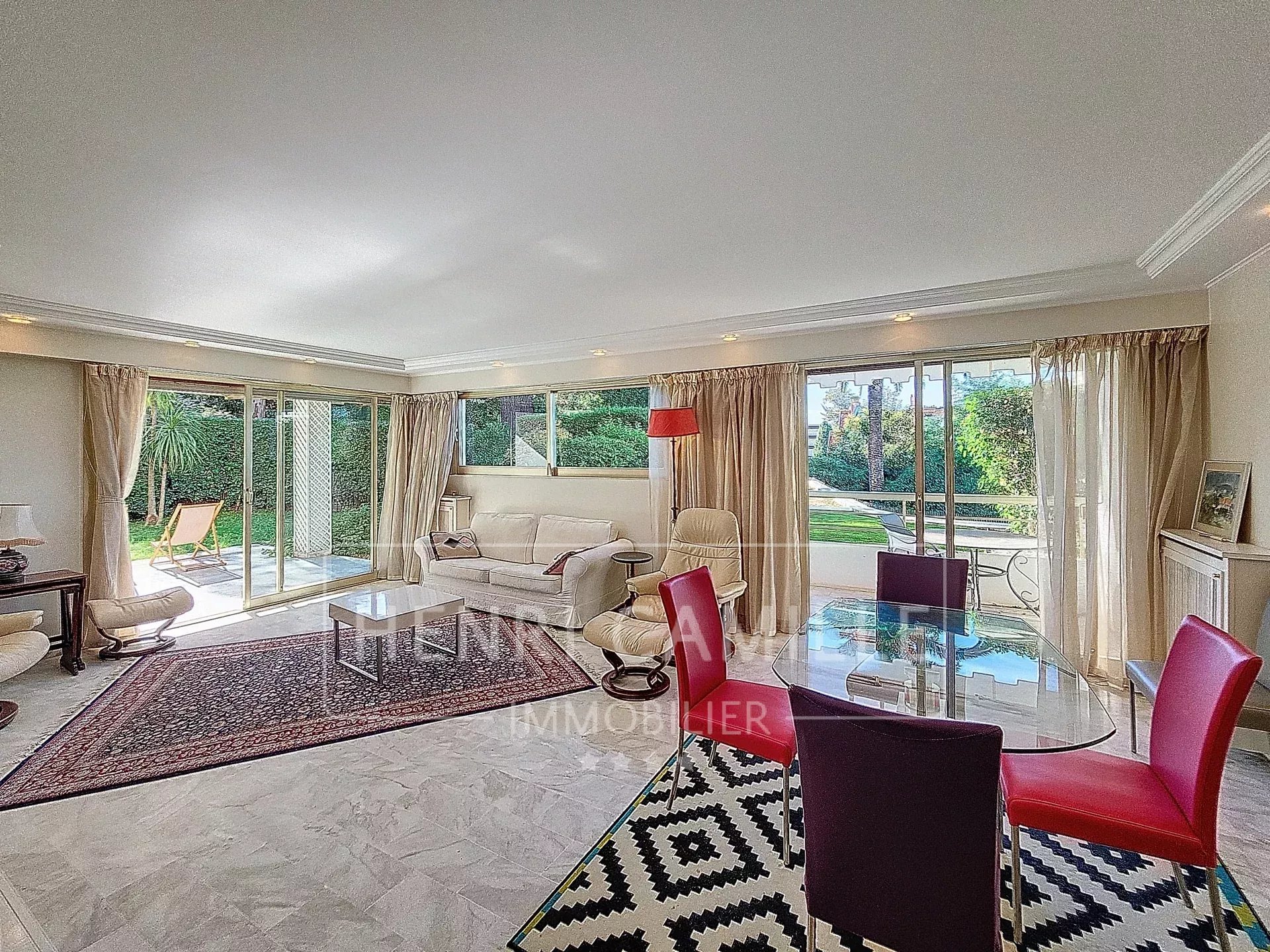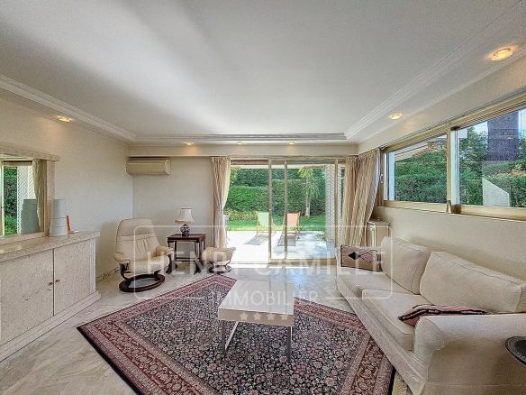Cannes Montfleury, à 2 pas du complexe sportif de la ville (piscine et tennis), dans une résidence de grand standing, très beau 4 pièces de 113 m² LC ouvrant sur 120 m² de terrasse et jardin. Il est composé d’un grand séjour, 3 chambres, 3 salles de bains et douches, une cuisine séparée, Cave et parking. Accès au centre ville à pied en 15 mn et bus devant l’immeuble.