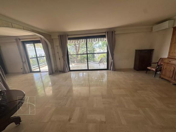 Dans superbe résidence de grand standing sécurisée et gardiennée, au calme absolu avec piscine (10*20m)avec transats, tennis et parc de 2 hectares, Appartement d’angle avec vue dégagée jusqu’à la mer de 84.07m2 loi carrez, bénéficiant de deux terrasses profonde, une de 19m2 et une seconde de 18m2 Il est composé d’une entrée , un beau séjour donnant sur une terrasse profonde d’environ 18m2 avec très jolie vue sur le parc de la résidence et sur la mer exposition sud ouest, une cuisine indépendante , deux chambres avec chacune sa salle de douche – wc indépendant , un wc invité.