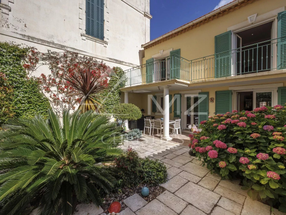 Comme un secret bien gardé, laissez-vous séduire par cette authentique maison de pécheurs de 198 m2 environ, idéalement située au cœur du quartier résidentiel du Palm Beach, au calme jouissant d’une vue dégagée sur la mer depuis les terrasses des chambres du 1 et 2ème étages. 5 chambres, belle et grande cuisine moderne entièrement équipée, salle à manger et séjour avec cheminée ouvrant sur une cour intérieure joliment paysagée avec bassin où il fait bon se prélasser en fin de journée à la fraiche. Garage pour une voiture. Idéal pied à terre pour une grande famille.