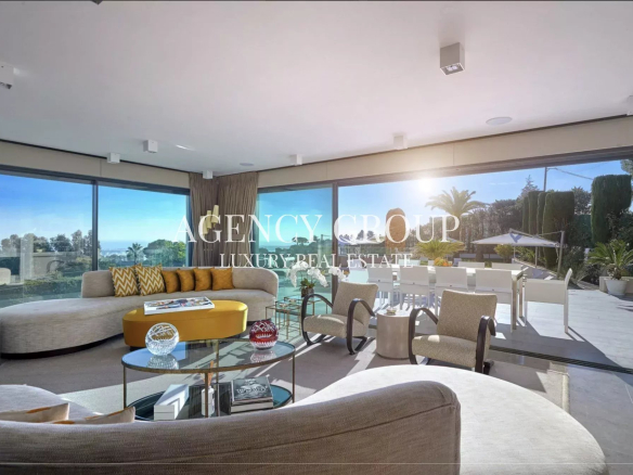 Situé dans les hauteurs du secteur de Super Cannes, nous vous proposons cette magnifique villa contemporaine d’environ 300m2 et bénéficiant d’une superbe vue mer panoramique allant des Alpes du Sud à Monaco