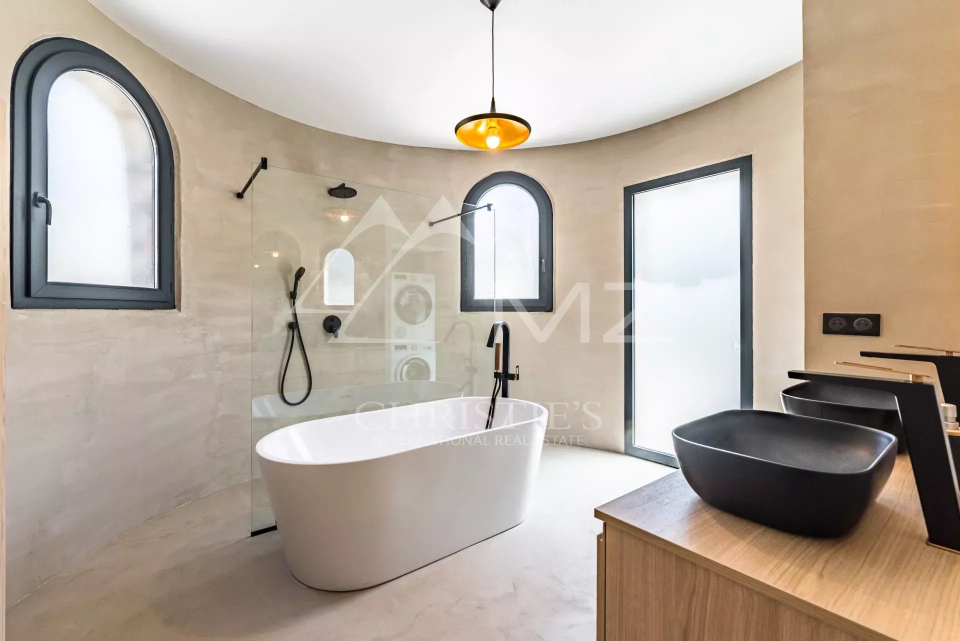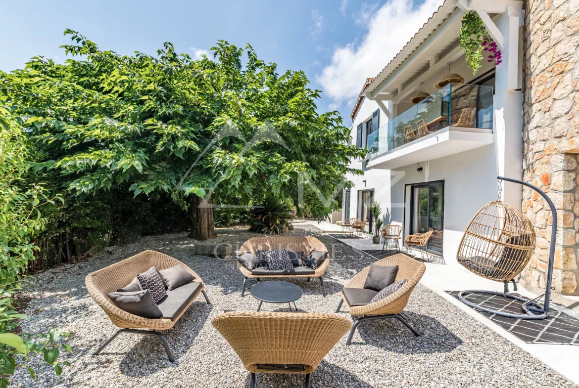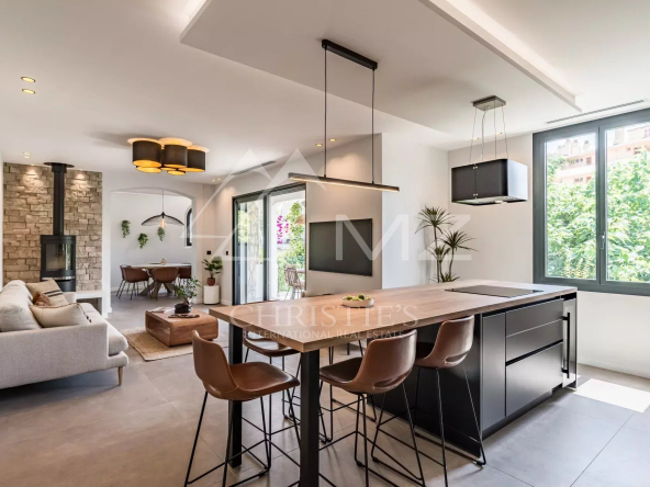 Exposée plein sud, à deux pas du centre-ville et des écoles, le jardin arboré est dotée d’une très belle piscine chauffée.