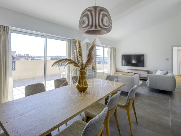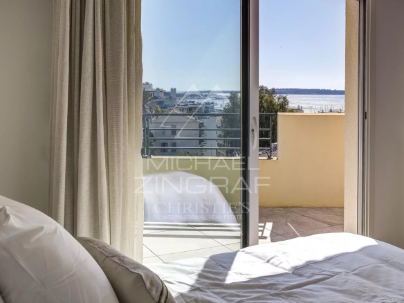 Situé à deux pas du centre-ville de Cannes dans une résidence récente à échelle humaine, beau Penthouse de 172 m² environ offrant : hall d’entrée, double séjour baigné de lumière et donnant accès à une magnifique terrasse de 150 m² environ, bénéficiant également d’une vue sur la mer et les îles de Lérins, cuisine américaine équipée ainsi que 4 chambres en-suite avec salles de bains/douches et dressing dont une master avec accès à la terrasse et vue sur la mer.