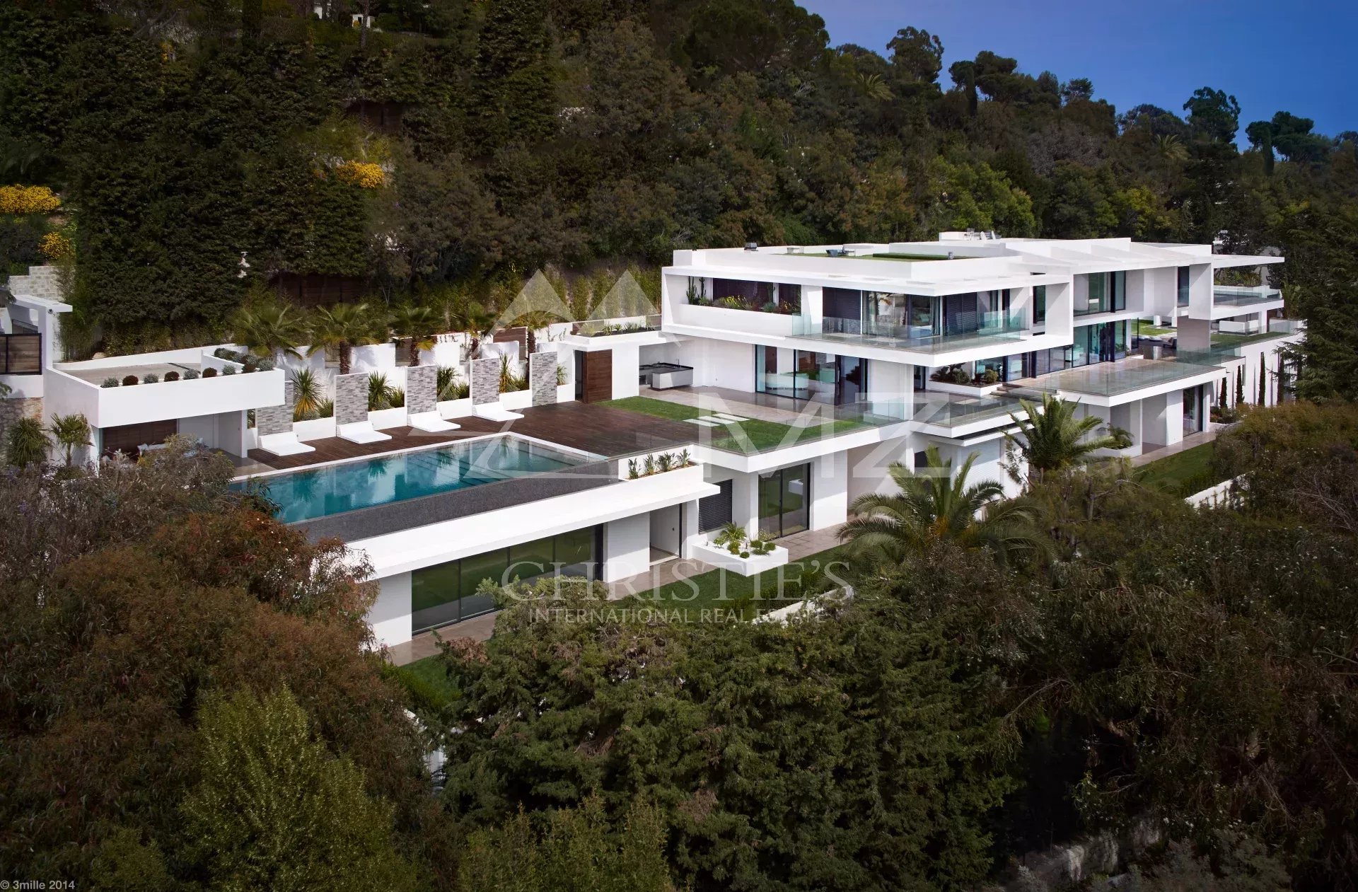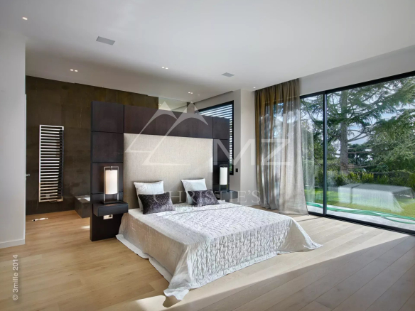 Propriété contemporaine d’exception neuve, située dans l’un des quartiers les plus prisés de Cannes, à proximité immédiate de la Croisette, offrant un panorama féérique sur les Iles de Lérins et la baie de Cannes. Prestations de qualité, 8 chambres en suite, piscine intérieure, spa, salle de sport, salle de cinéma, logement de gardiens, garage 8 voitures. A découvrir absolument.