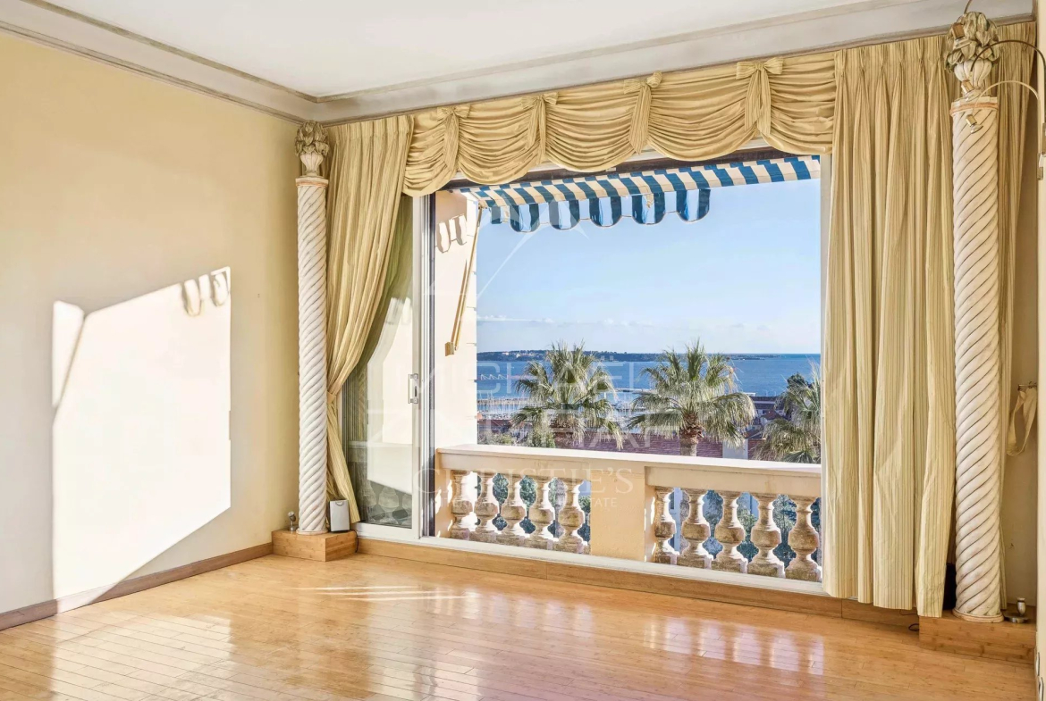 Ce bien de caractère dispose d’une entrée, d’un vaste séjour lumineux de 28 m², offrant une vue panoramique imprenable sur la mer et les Îles de Lérins, une cuisine indépendante, une chambre vue mer, une salle de douche avec toilettes.