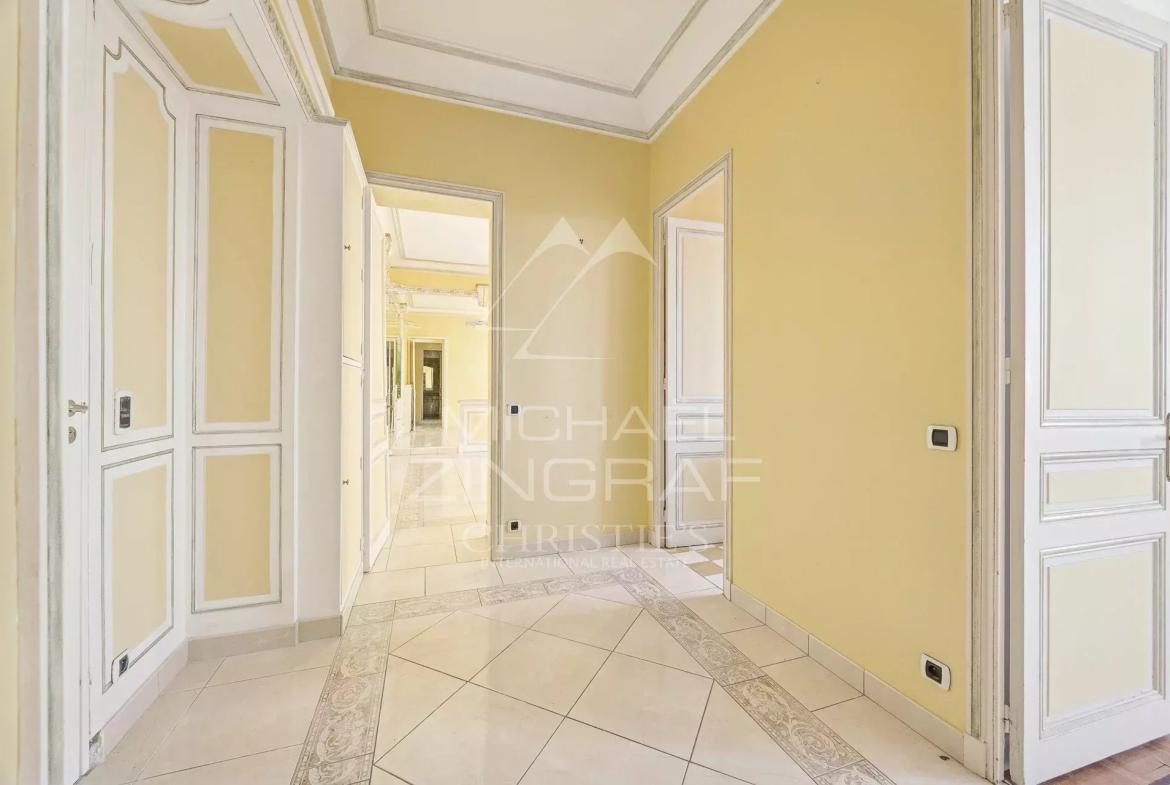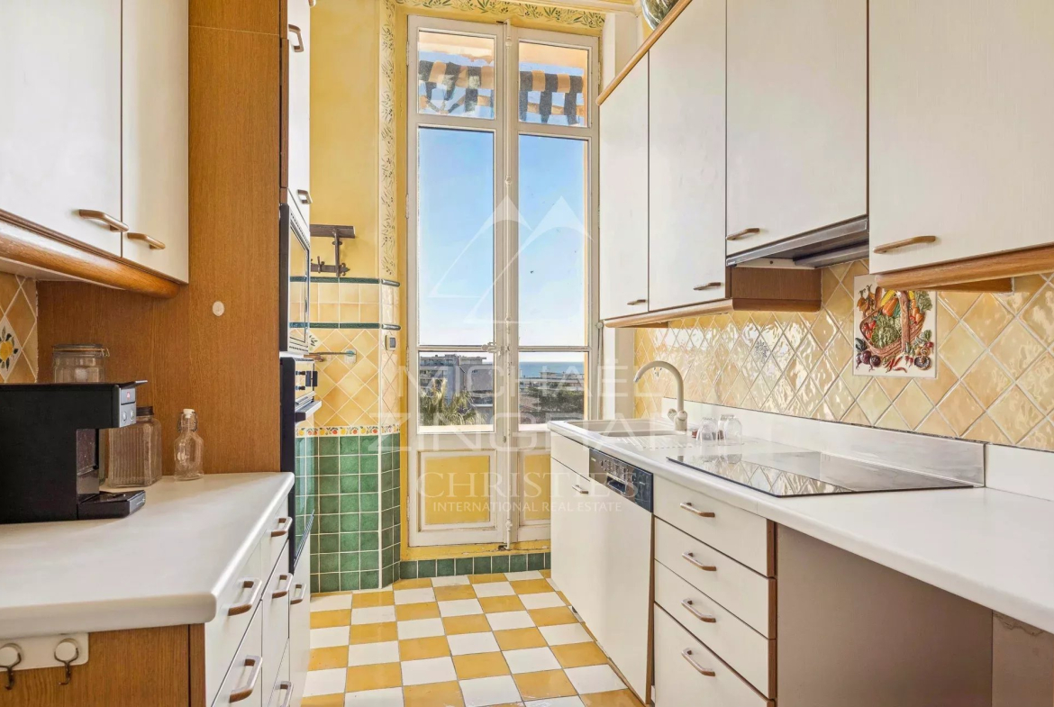 Dans la prestigieuse résidence Parc Continental, très bel appartement 2 pièces de 70 m² avec une magnifique vue mer avec hauteur sous plafond, situé en étage élevé d’un immeuble historique construit en 1850, offrant un cadre de vie unique au cœur d’un parc arboré de 1,5 hectare.