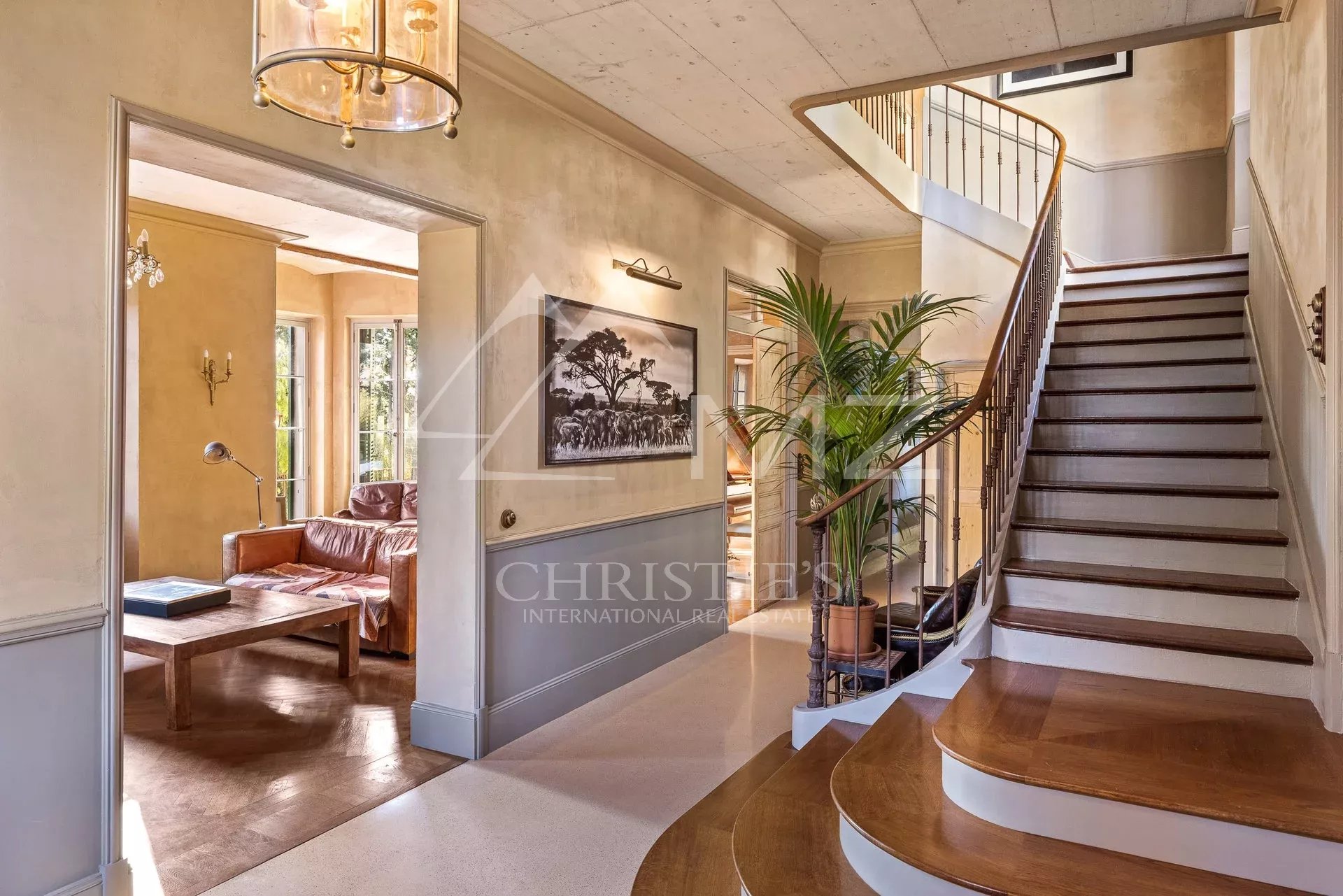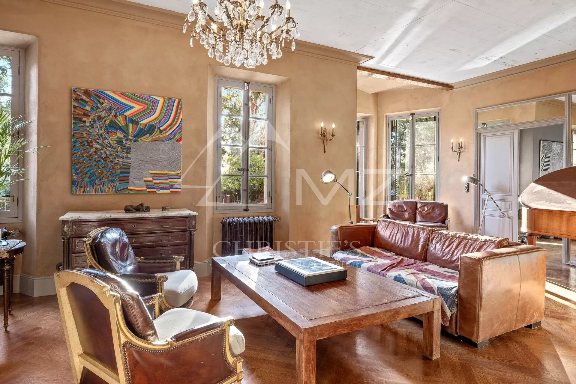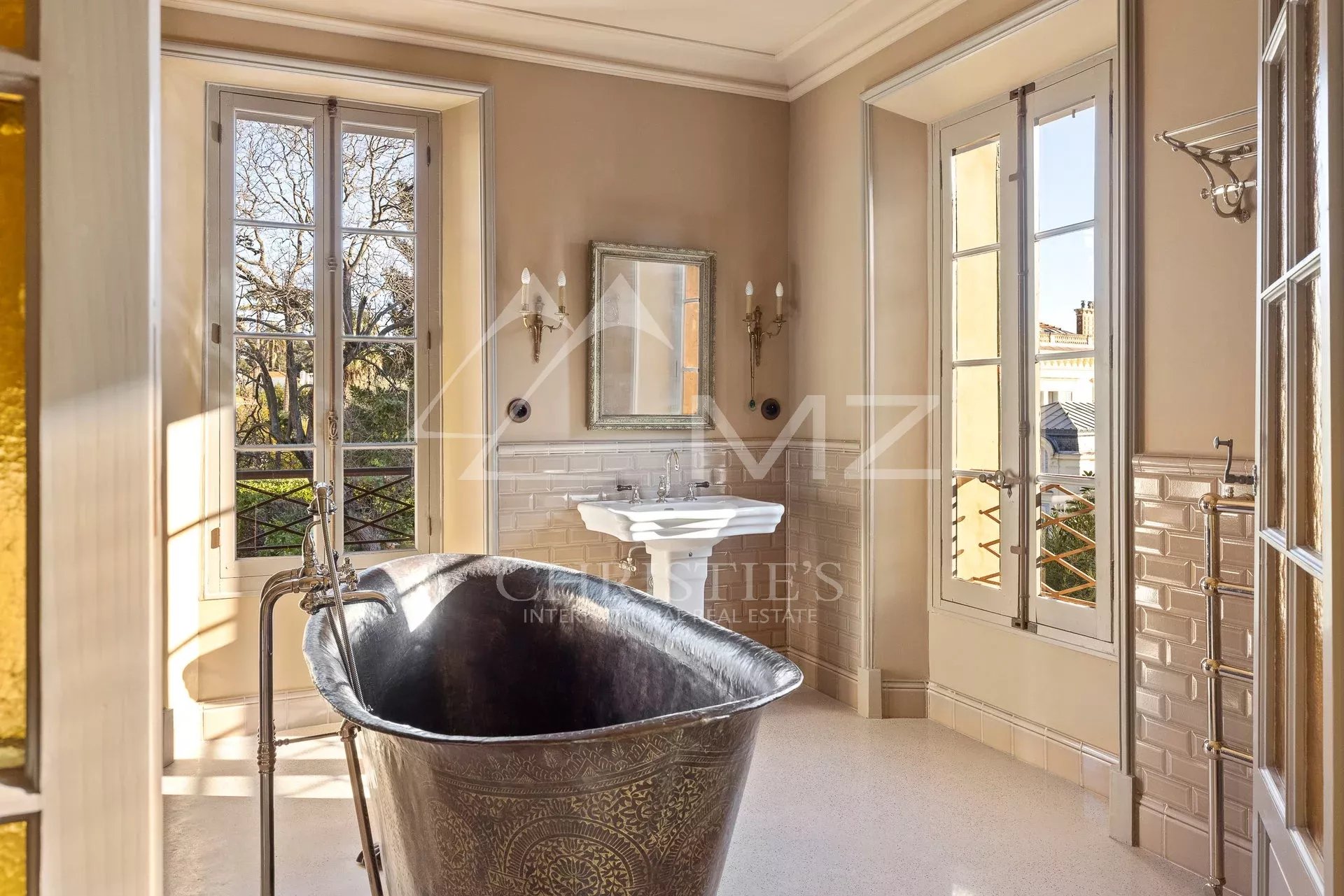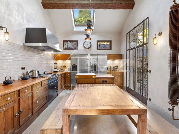 Demeure de charme située au calme de 400m² environ, proche de la mer et du palais des festivals, comprenant : Un salon, une salle de sport, une salle à manger et une cuisine. A l’étage, quatre chambres en suite avec quatre salle de bains. Grand parc arboré de 1500m², piscine 12×6.