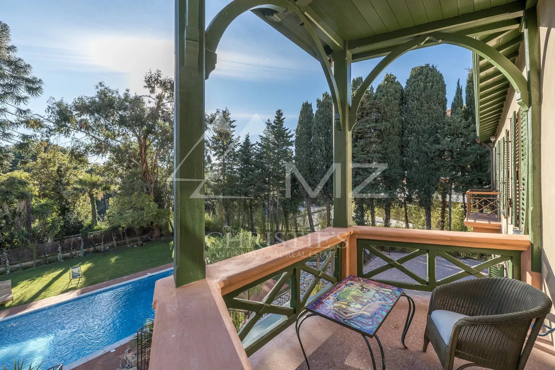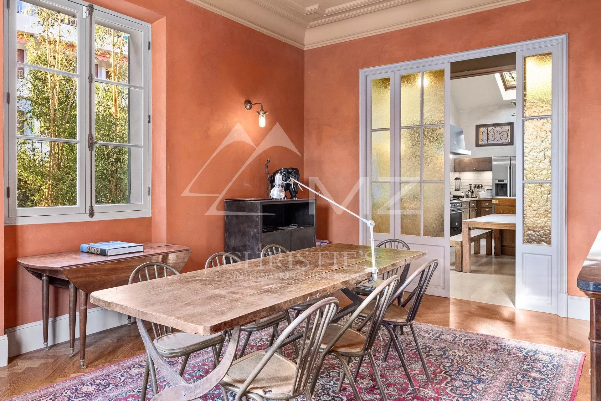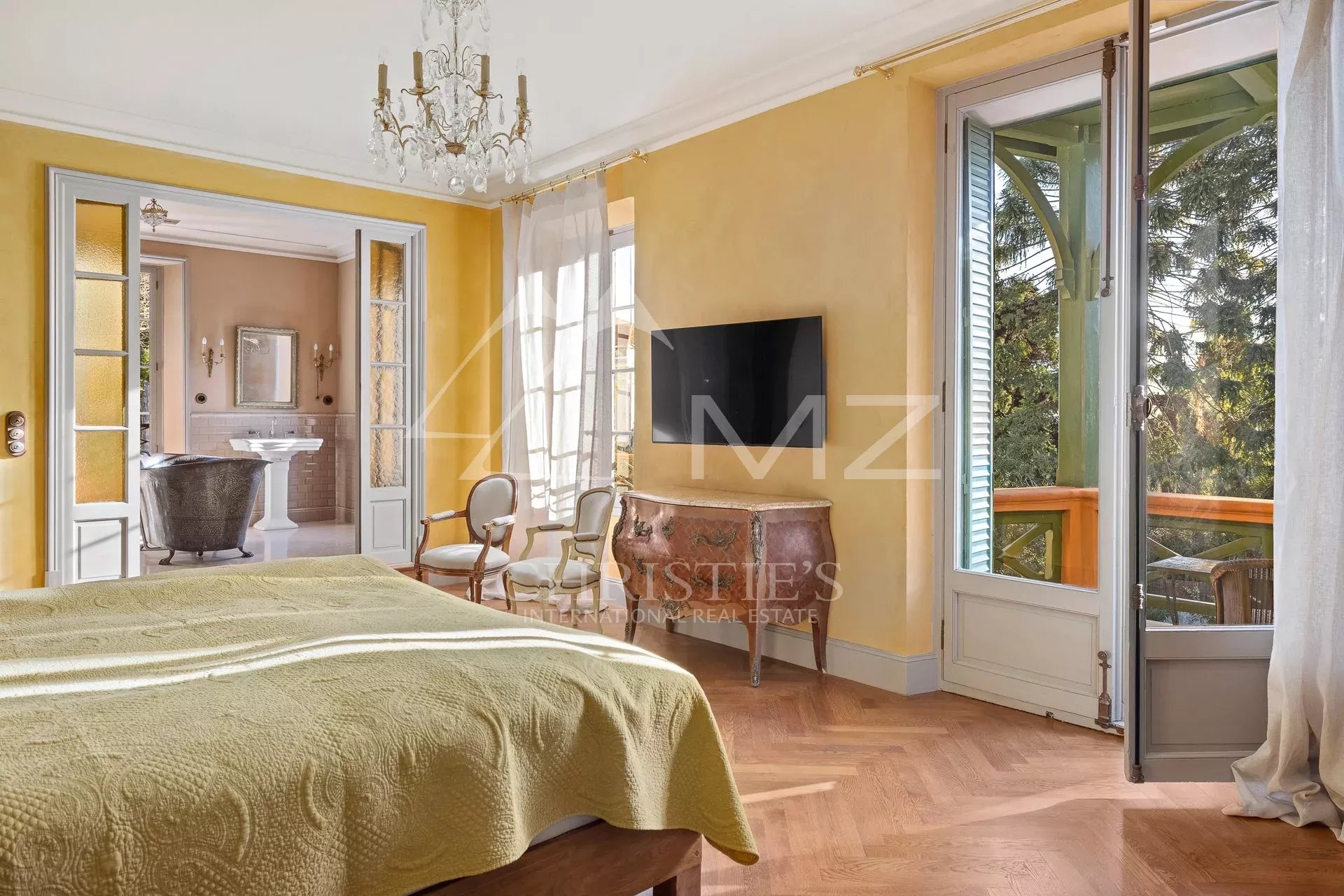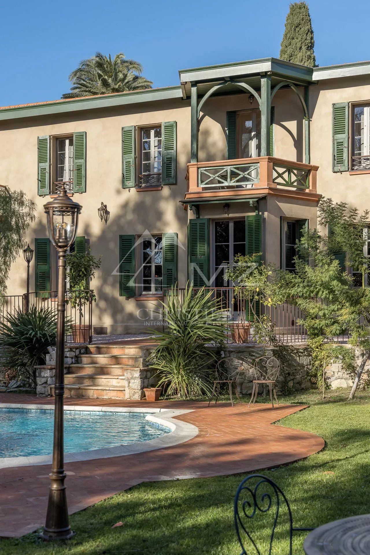 Demeure de charme située au calme de 400m² environ, proche de la mer et du palais des festivals, comprenant : Un salon, une salle de sport, une salle à manger et une cuisine. A l’étage, quatre chambres en suite avec quatre salle de bains. Grand parc arboré de 1500m², piscine 12×6.
