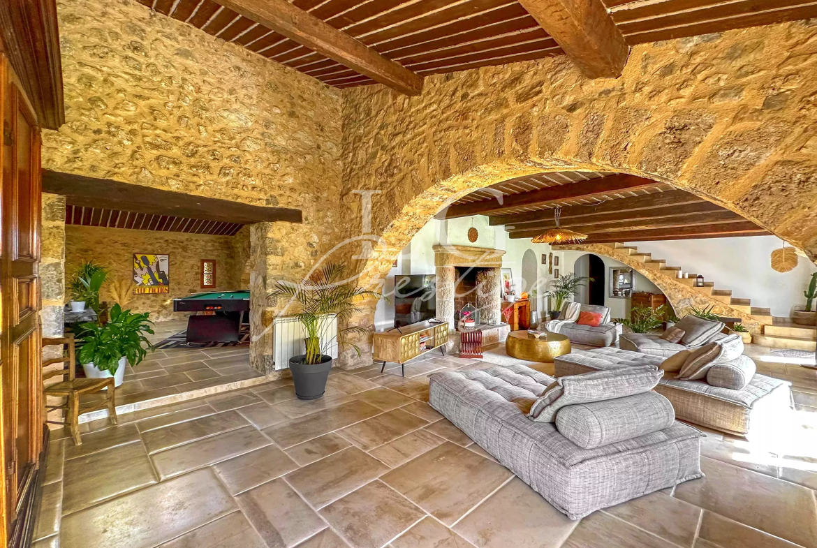 Nichée au cœur de la nature provençale, cette authentique bergerie du XVIIe siècle entièrement rénovée déploie un charme rare et raffiné, mêlant matériaux anciens et confort contemporain. D’une superficie d’environ 235 m², elle offre des volumes généreux et une atmosphère chaleureuse.