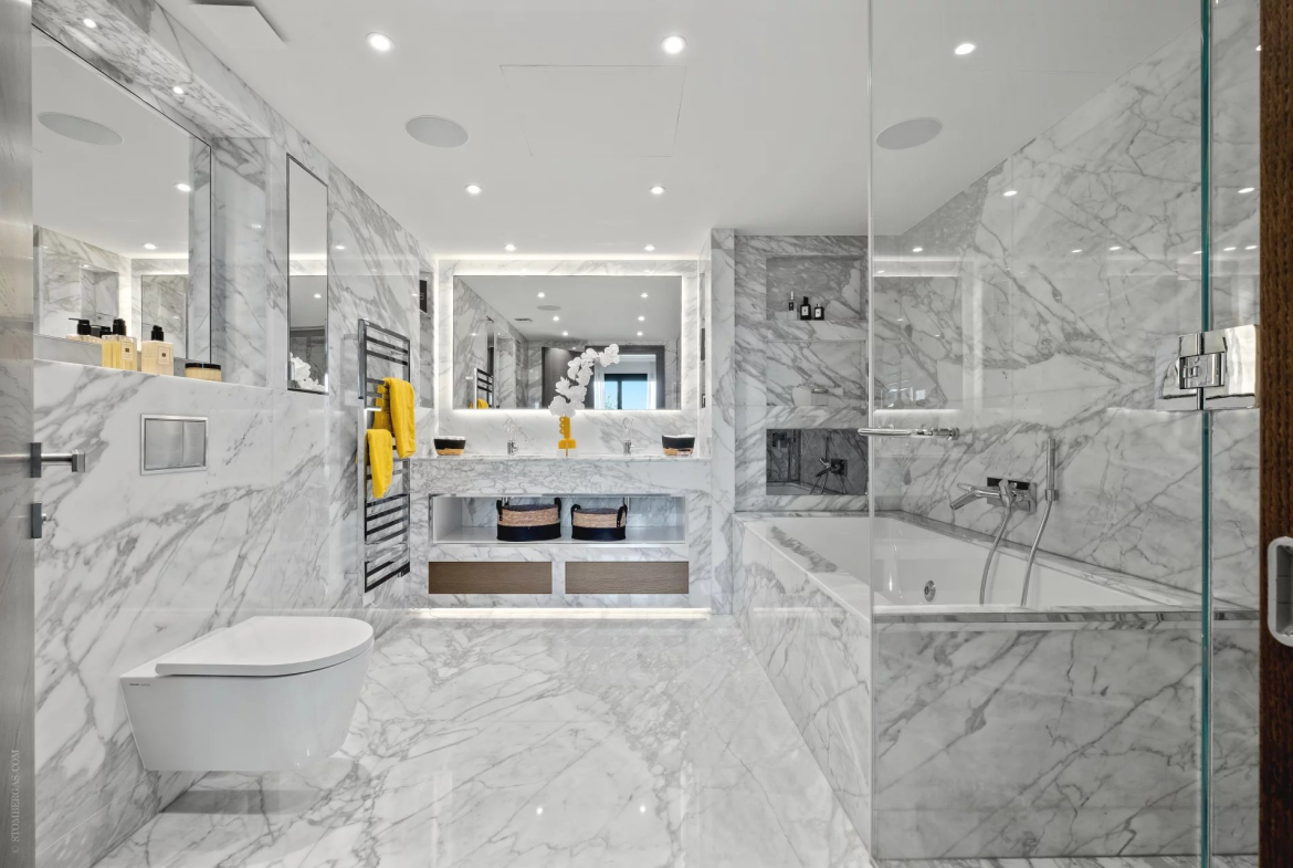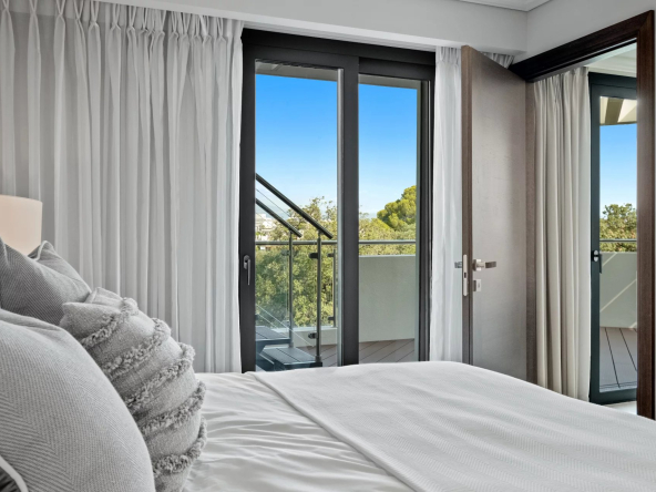 La résidence se compose de deux bâtiments de cinq étages comprenant 88 appartements allant de 2 pièces jusqu’aux duplex et penthouses avec piscine privative sur le toit terrasse. Tous les appartements bénéficient de larges terrasses ou jardins privatifs, certains avec vue mer ou montagne.2 Parkings privés en sous-sol avec une entrée fermée et sécurisée et une cave sont inclus dans le prix de vente.