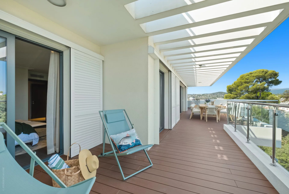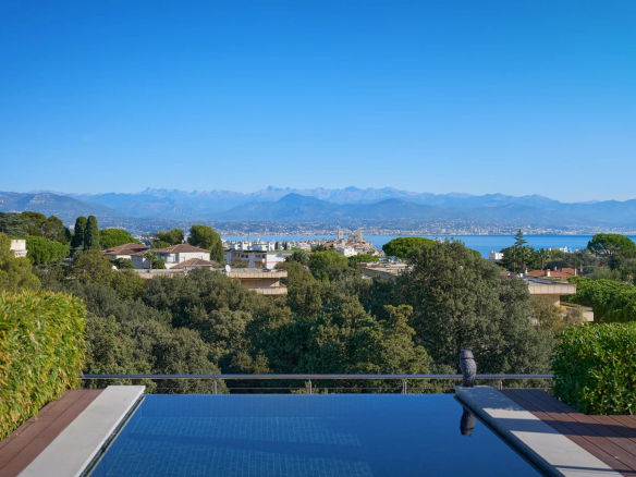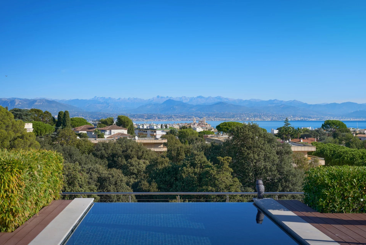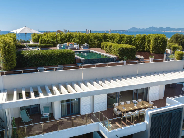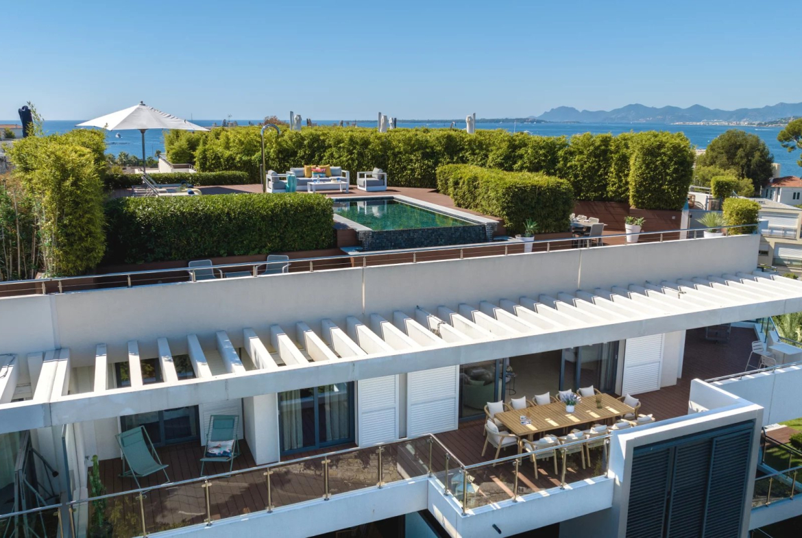Cap d’Antibes: Sous offre -Dans une résidence d’élégance et de qualité exceptionnelle: Penthouse 185 m² composé d’une entrée avec toilettes invités, un salon de 50 m² avec cuisine indépendante toute équipée de grande qualité, une chambre de maître avec sa salle de bain/toilette, trois autres chambres avec leur salle de bain/toilette. Terrasses sur 2 niveaux avec une piscine privative à débordement.